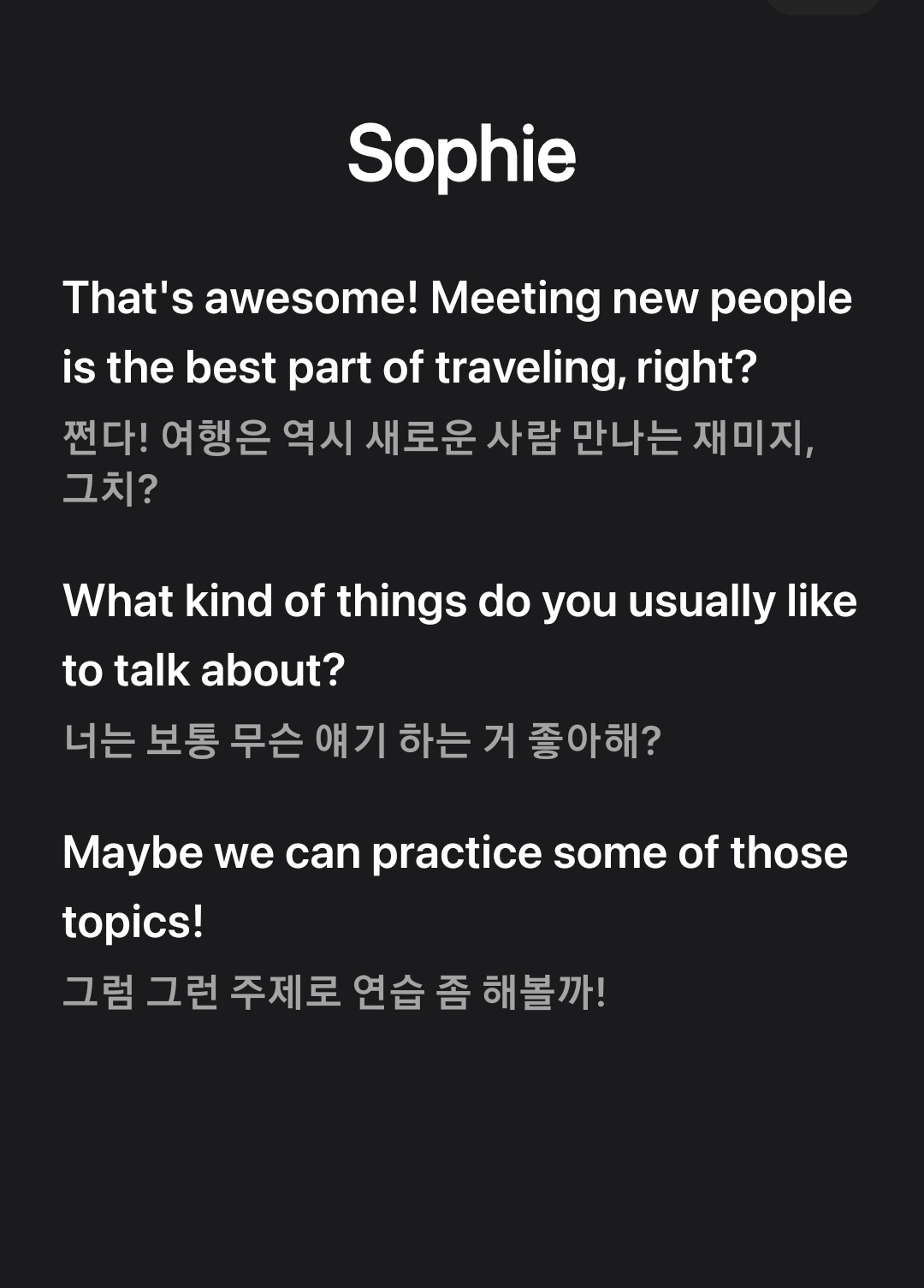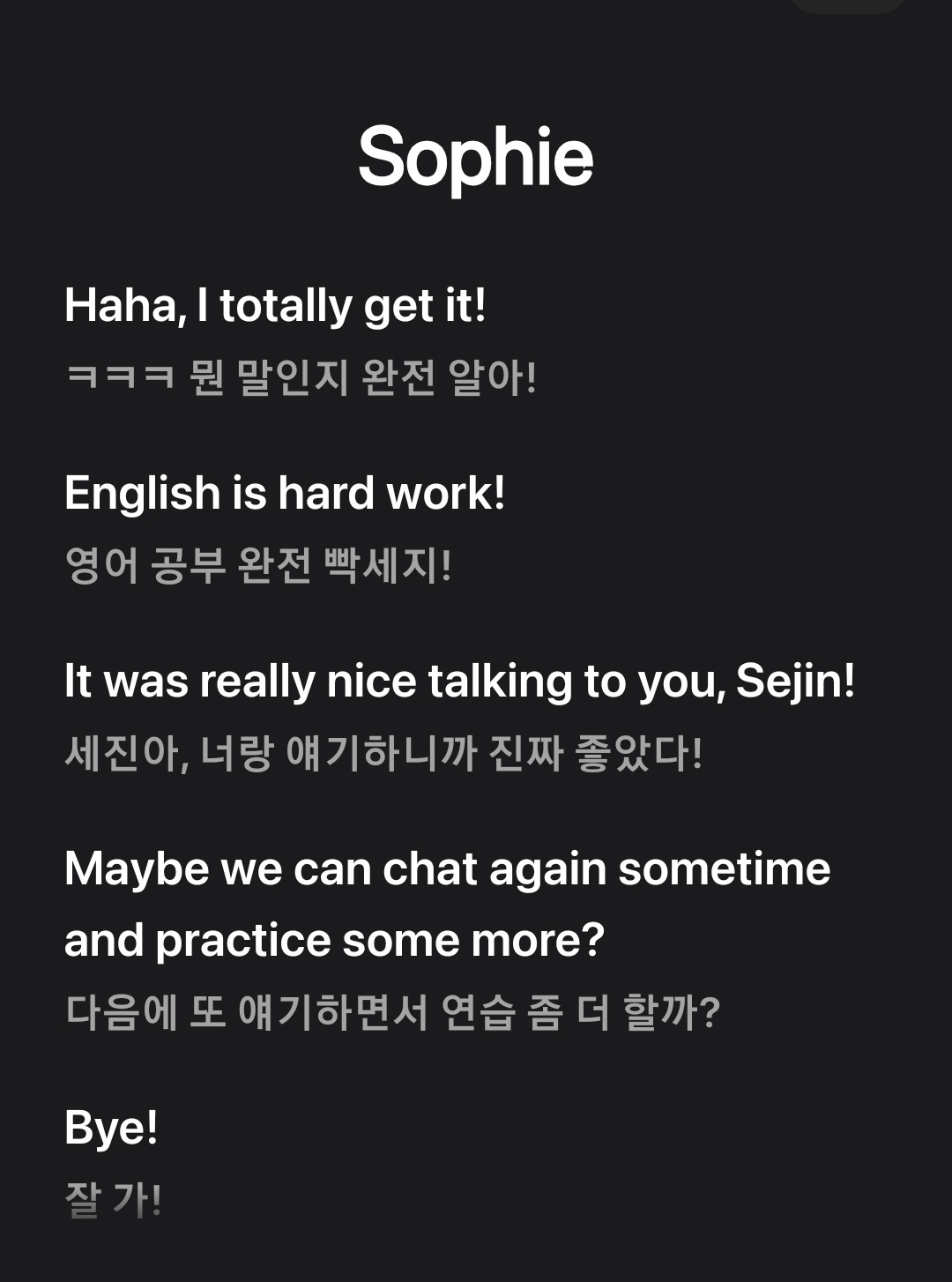 유료버전으로 하고 다시 처음 시작한 대화이다. 진짜 턱! 하고 막힌다.