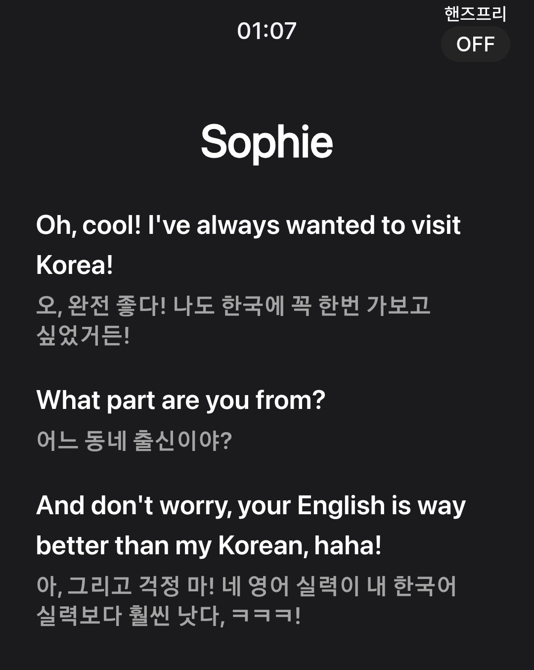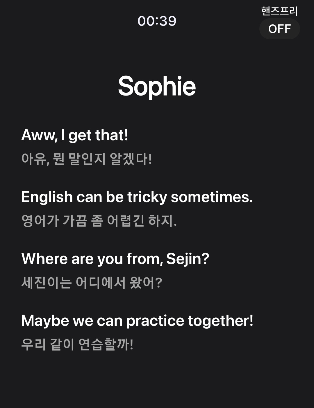 소피아랑 말하면서 6분을 넘겼다. 그리고