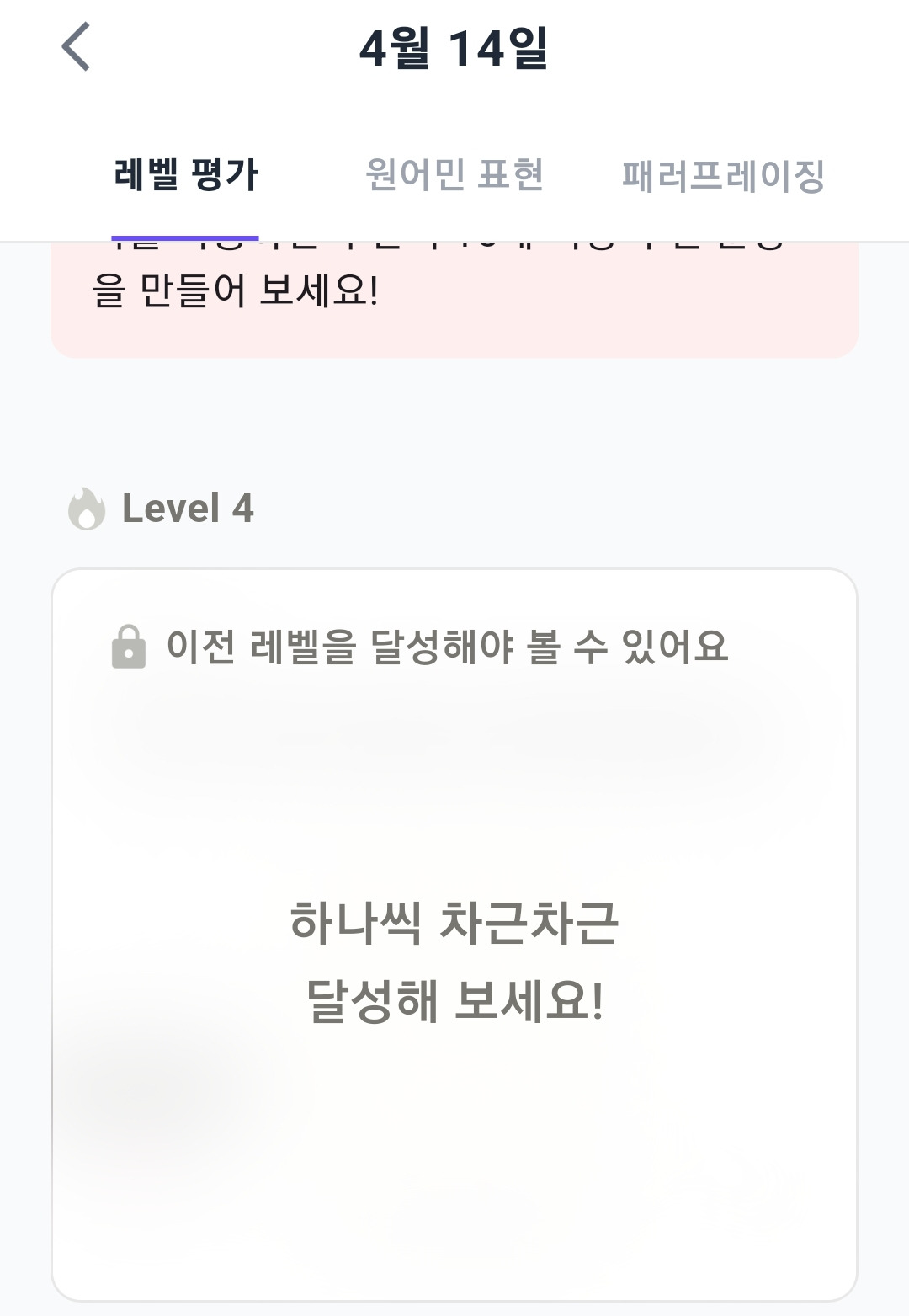 오늘 아픈데도 레벨 4 성공. 너무 기쁘다.