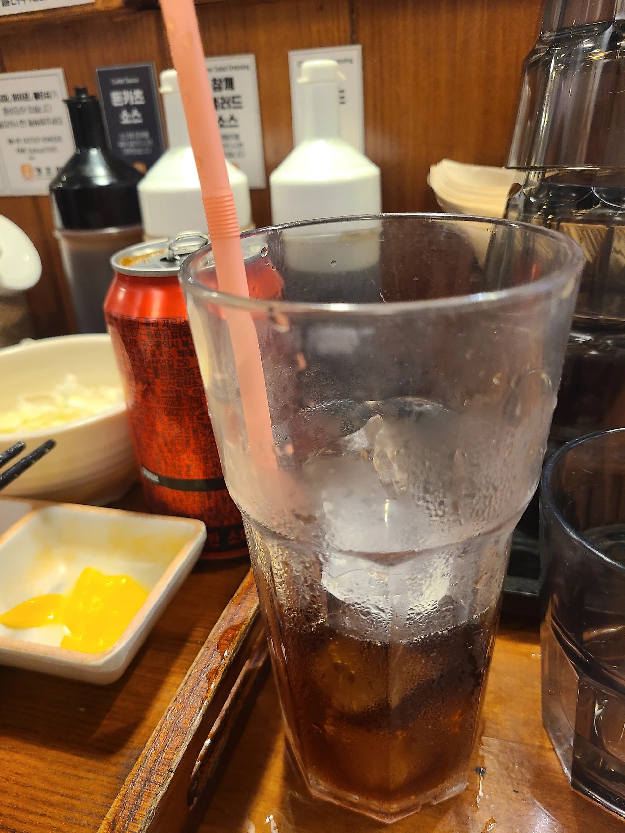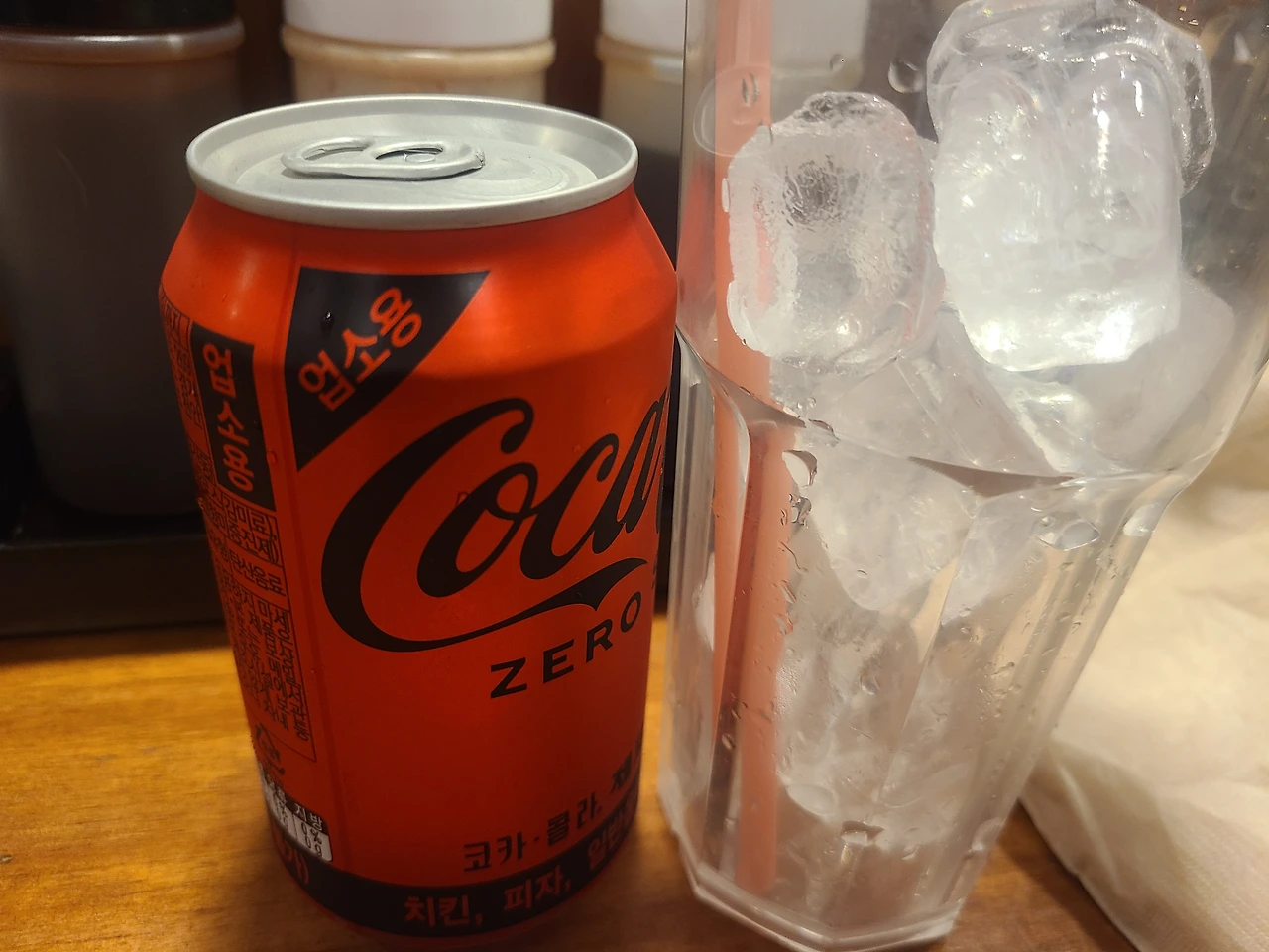 얼음컵에 제로콜라를 따라서 한 입 마셨다.