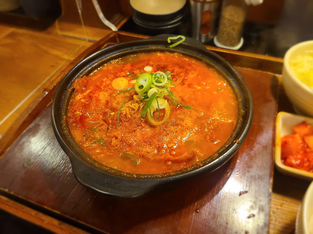 김치찌개와 돈까스를 한 번에 즐길 수 있는 것이 장점인 메뉴!