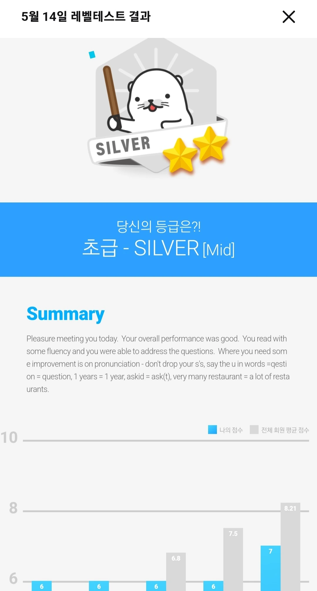 * 그리고 AI 통화 헤이링 어플의 소피아가 중급이라고 해줬다. 그거면 됐다...!