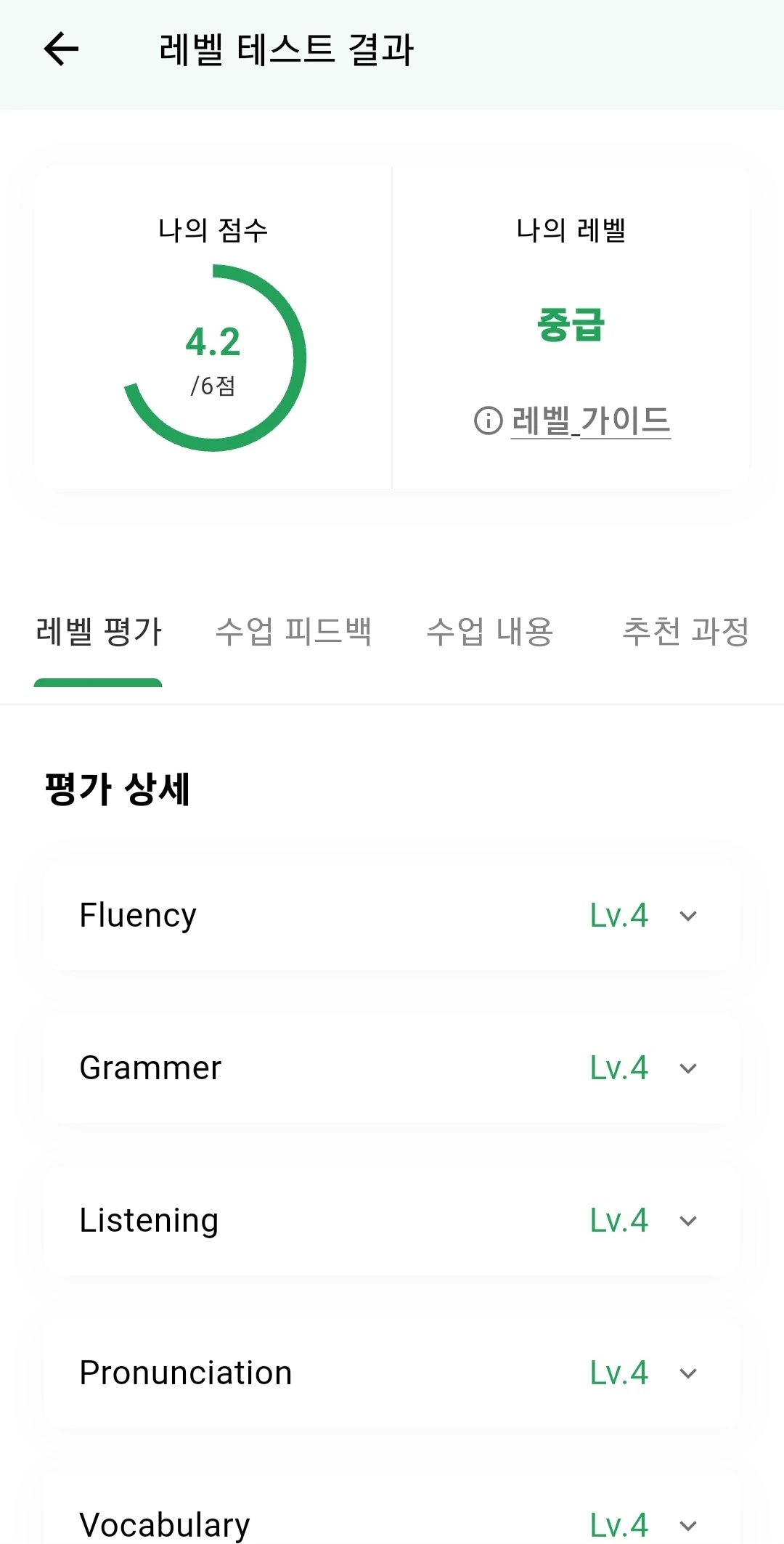 그래서 첫 번째 레벨테스트 끝냈을 때는