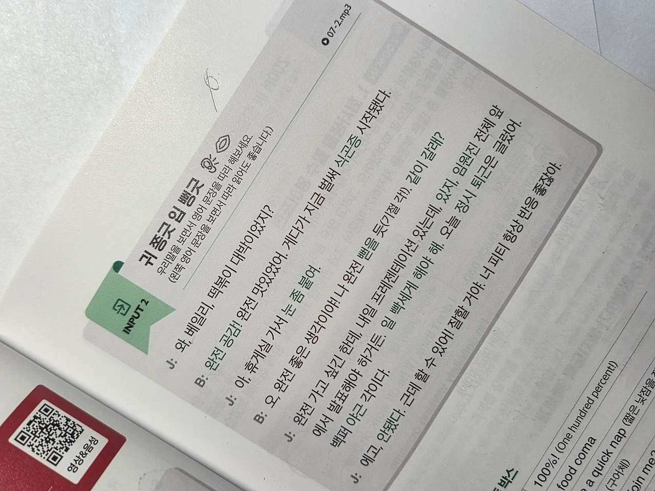 지금 제가 찍은 사진은 input 1단계로, 우선 읽고 들으면서
