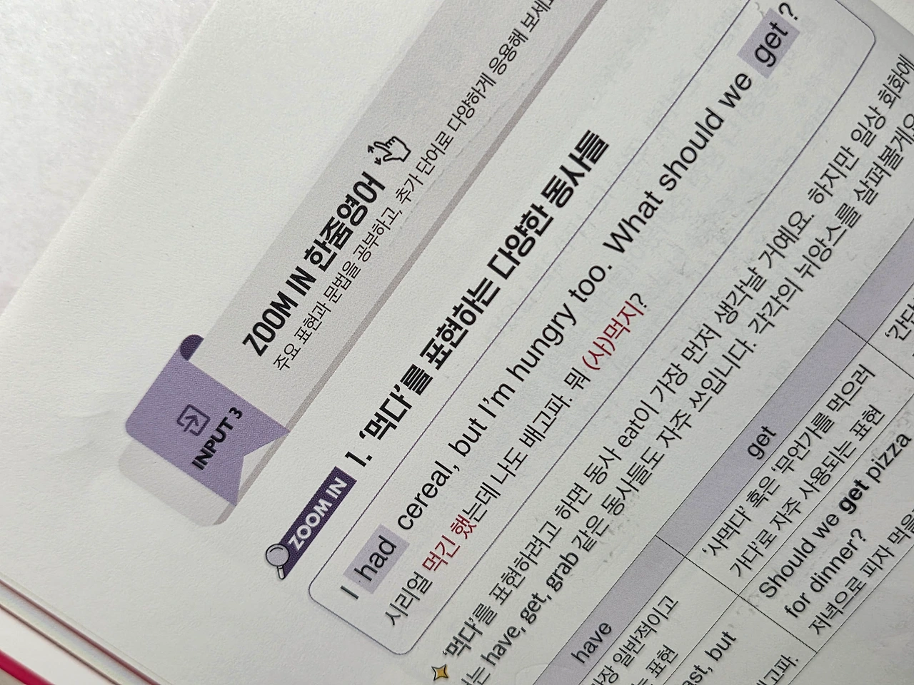이 책에서 역시, 먹다를 표현하는 단어가 "eat"만 있는 것이 아니라고 바로 알려줘서