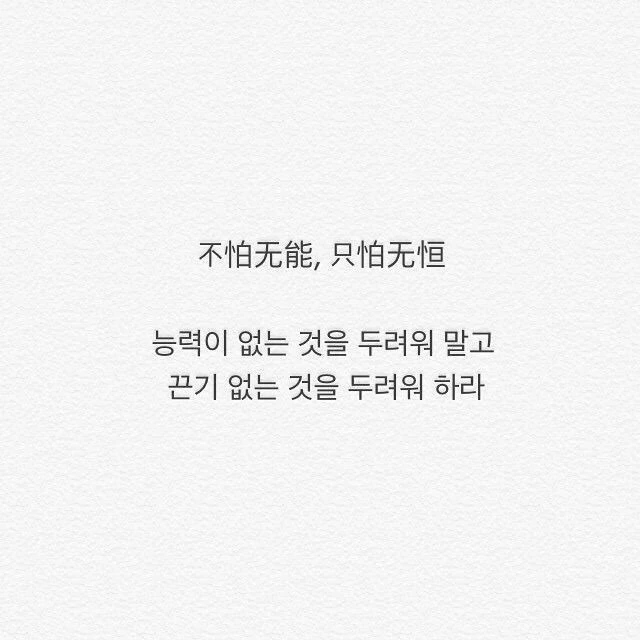 끈기가 없는 것을 두려워하라는 문장이에요.