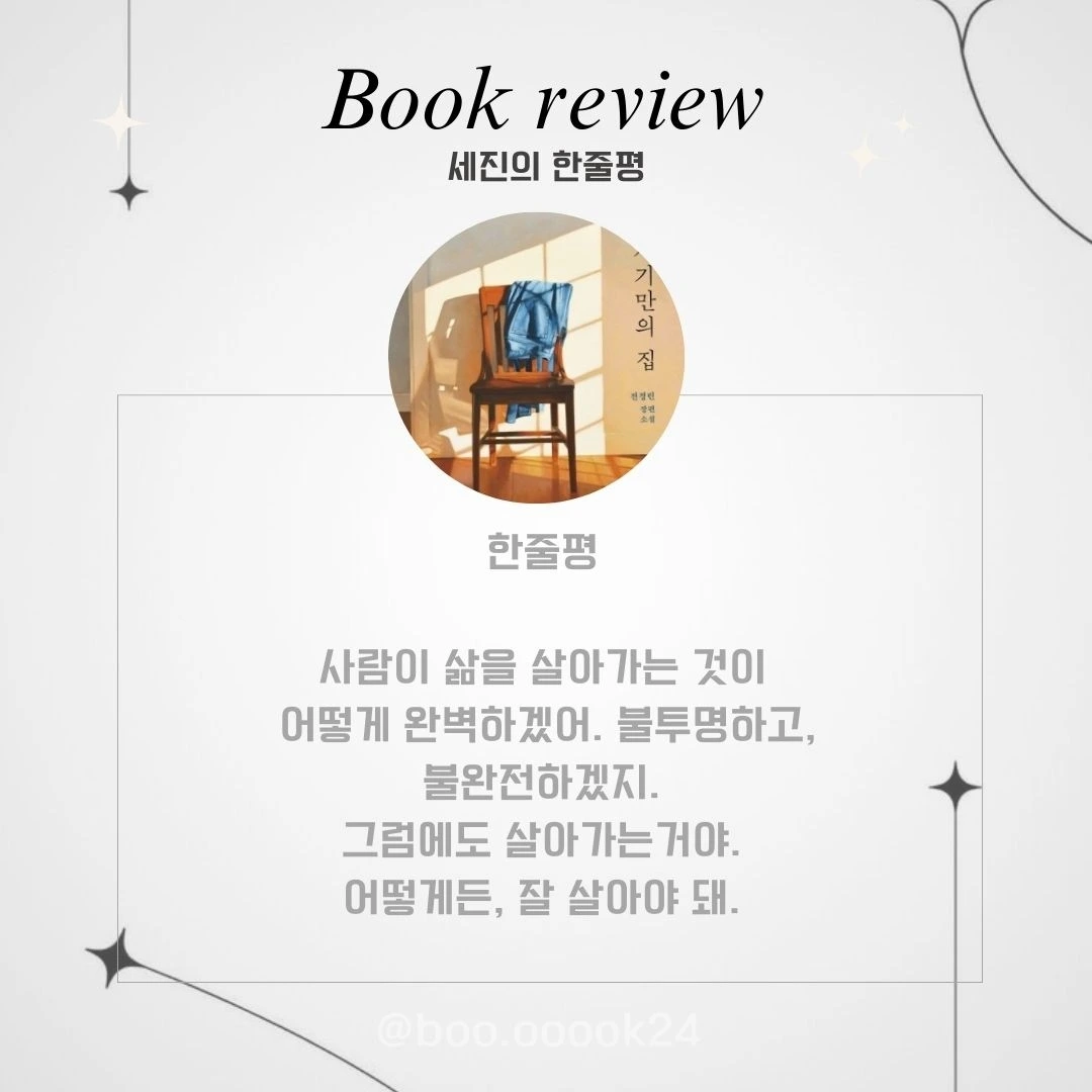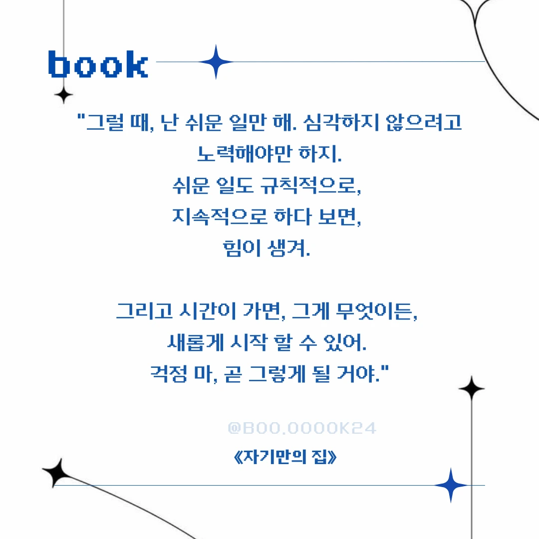 ‼️ <자기만의 집> 소설을 통해 담담하게 받아들일 수 있는 조언들과 아름다운 문장들이 참 좋았다.