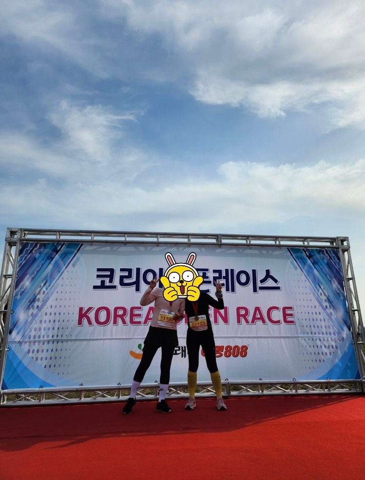 대회는 아침 9시 시작이다. 일찌감치 도착한 우리들은 기념사진을 대회전에 미리 찍었다. 작년에는 나 혼자 출전했기 때문에 대회장 앞에서 찍은 사진이 없었다. 셀카로 찍어서 제대로 찍질 못했다. 친구와 함께 소풍 나온 기분으로 여러 장을 찍었다.