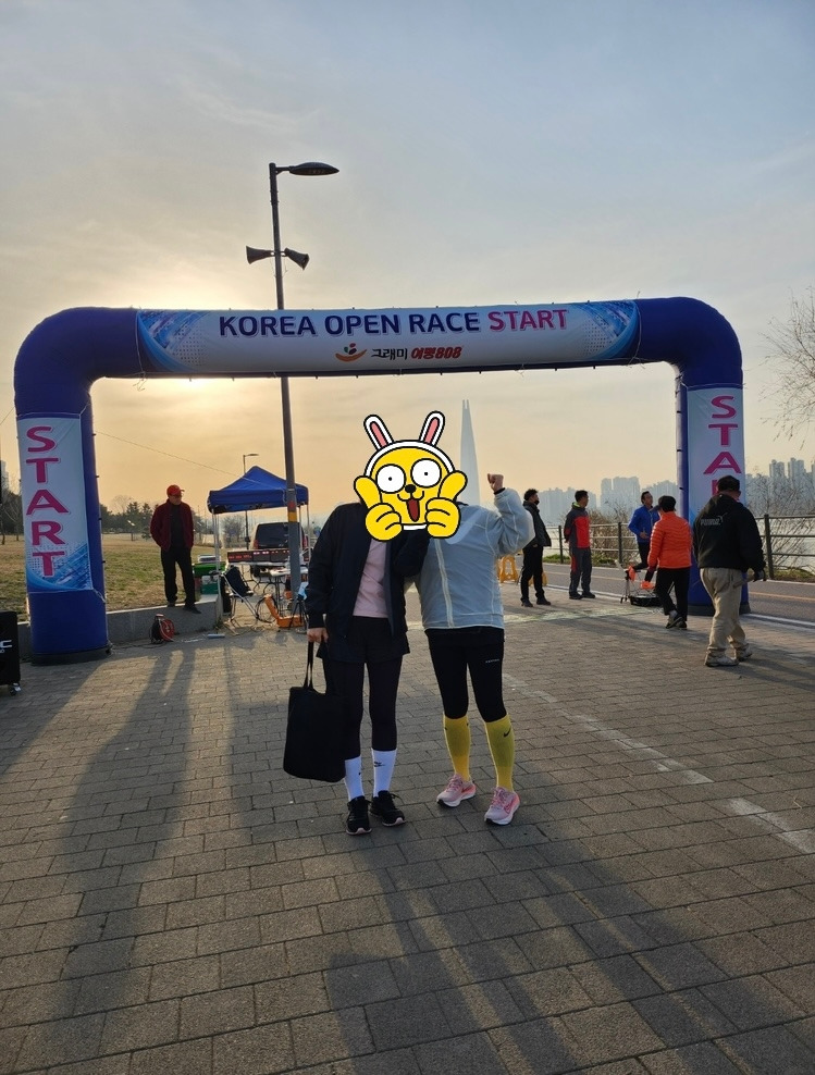 대회를 등록하고 함께 등록한 친구랑 꾸준히 연습했다. 가끔 같이 만나서 뛰기도 했다. 드디어 대회날이 되었다. 지하철 역에서 만나서 한 시간여 지나니 뚝섬에 도착했다. 달리기 동지들이 대회장으로 천천히들 걸어가고 있었다. 아침 일찍 집을 나서서 나와 같은 길을 가는 사람들을 만나는 것은 약간은 설레는 기분이다.
