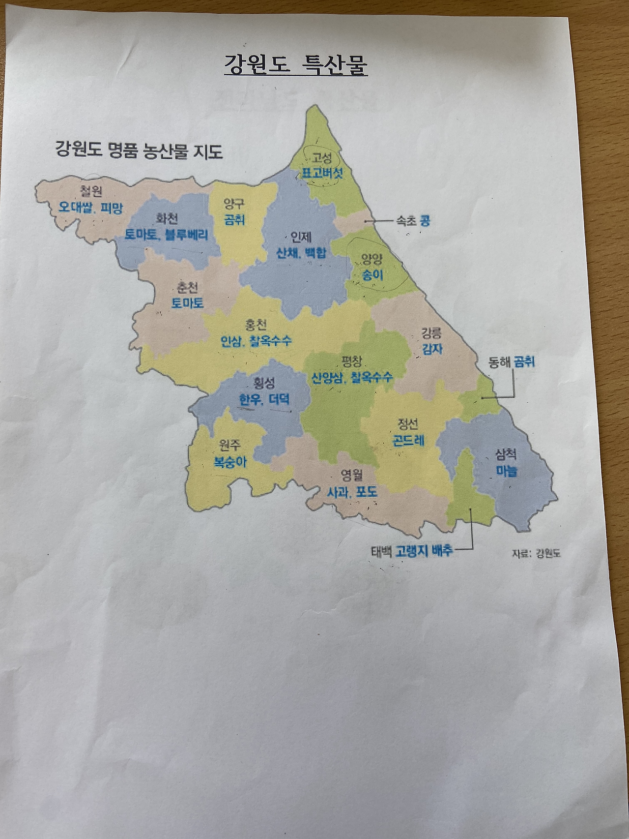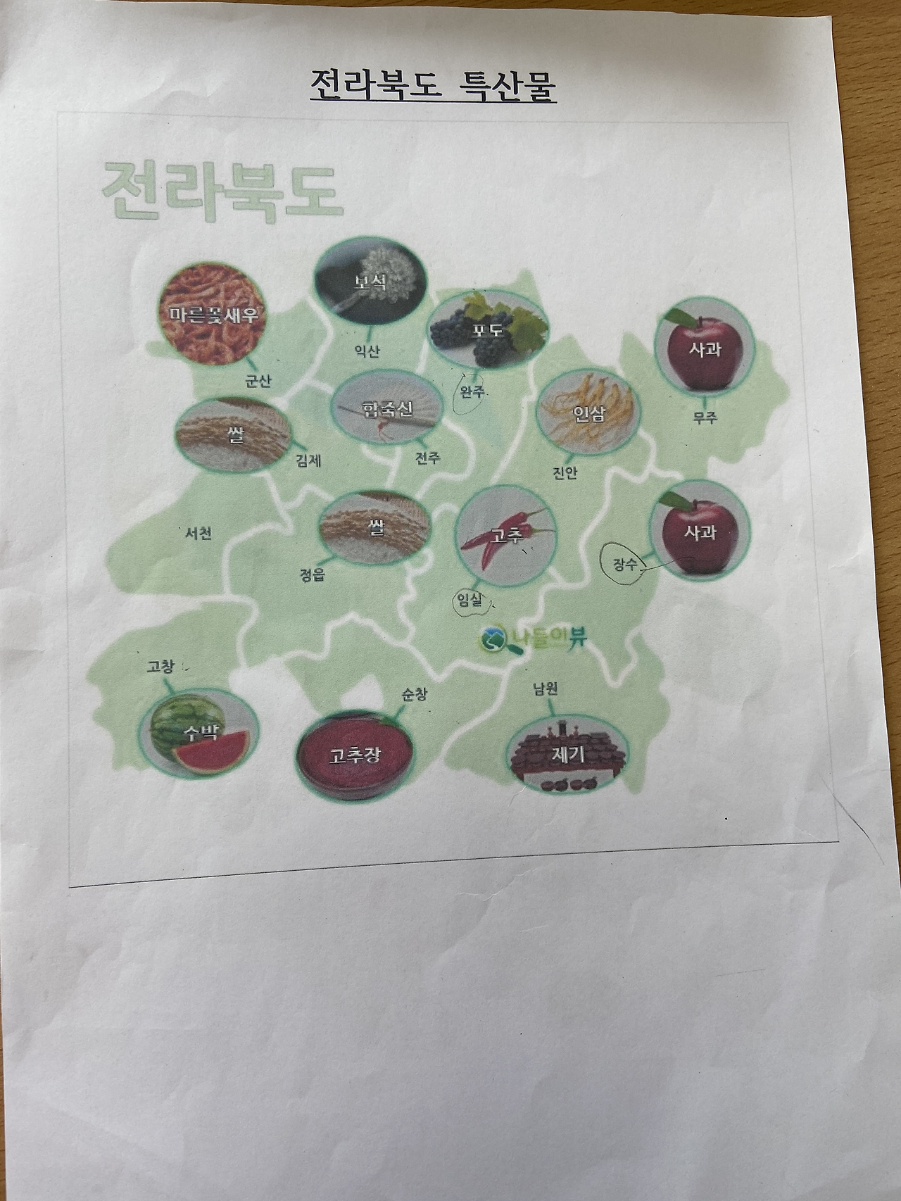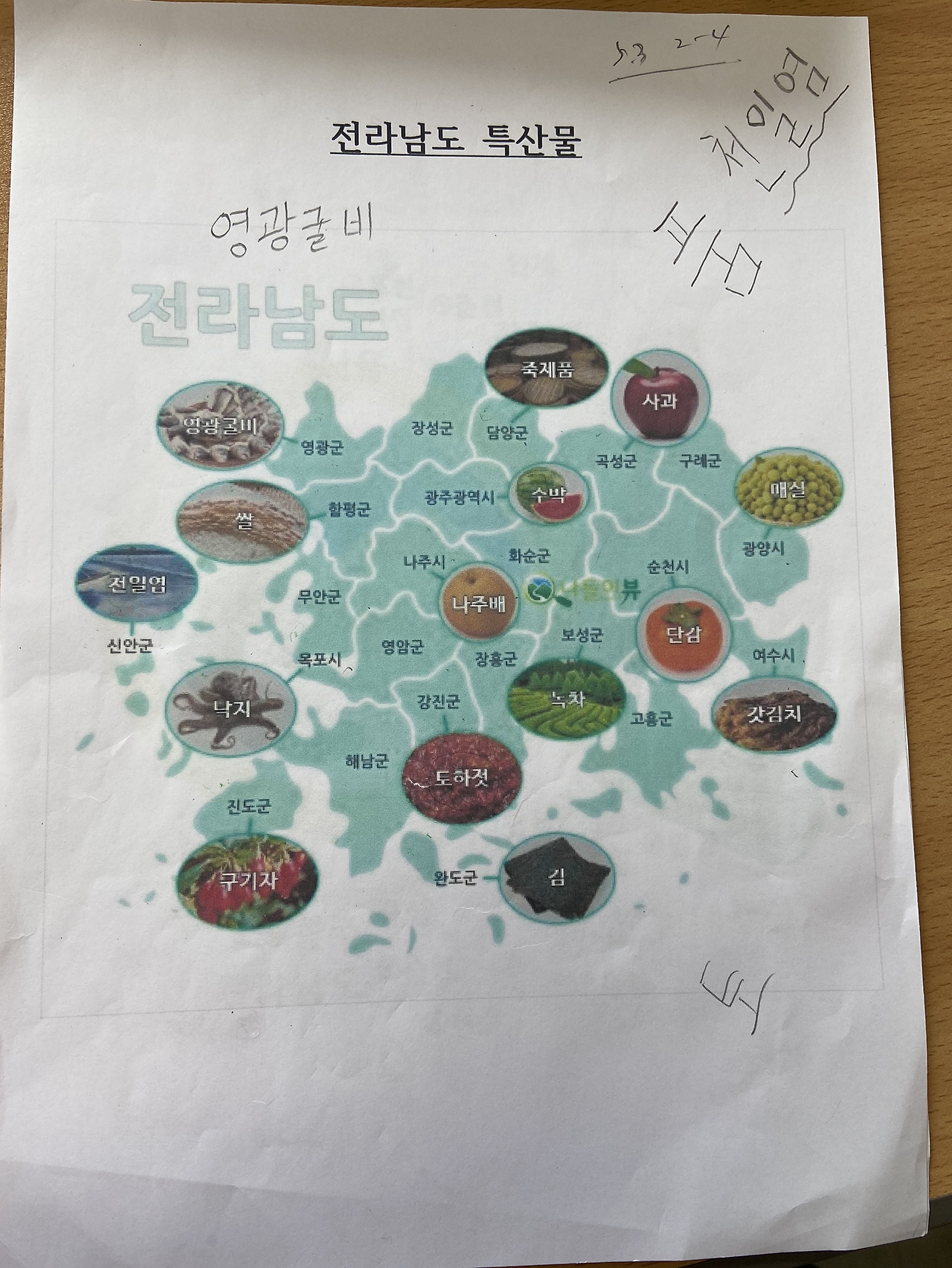 나름 괜찮은 지역별 특산물 지도를 준비해 갔다.