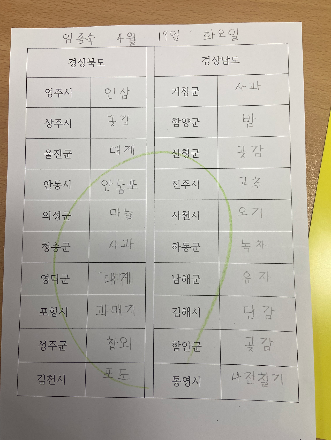 고급 단계 어르신들에게는 지도와 빈 양식지를 드렸다. 댁에서 지도를 보면서 최대한 특산물을 찾아서 적어오라고 말씀드렸다.
