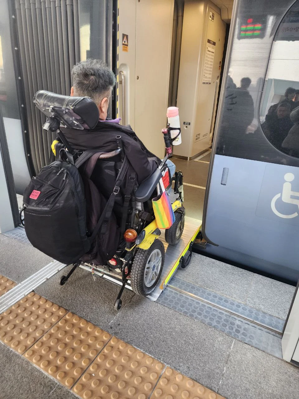 원주로 가는 시외고속버스에 휠체어 이용 장애인도 탈 수 있는 리프트가 설치되어 있었다면 이 눈 팽팽 도는 기차 순례는 필요 없었을 것이다ᆢ