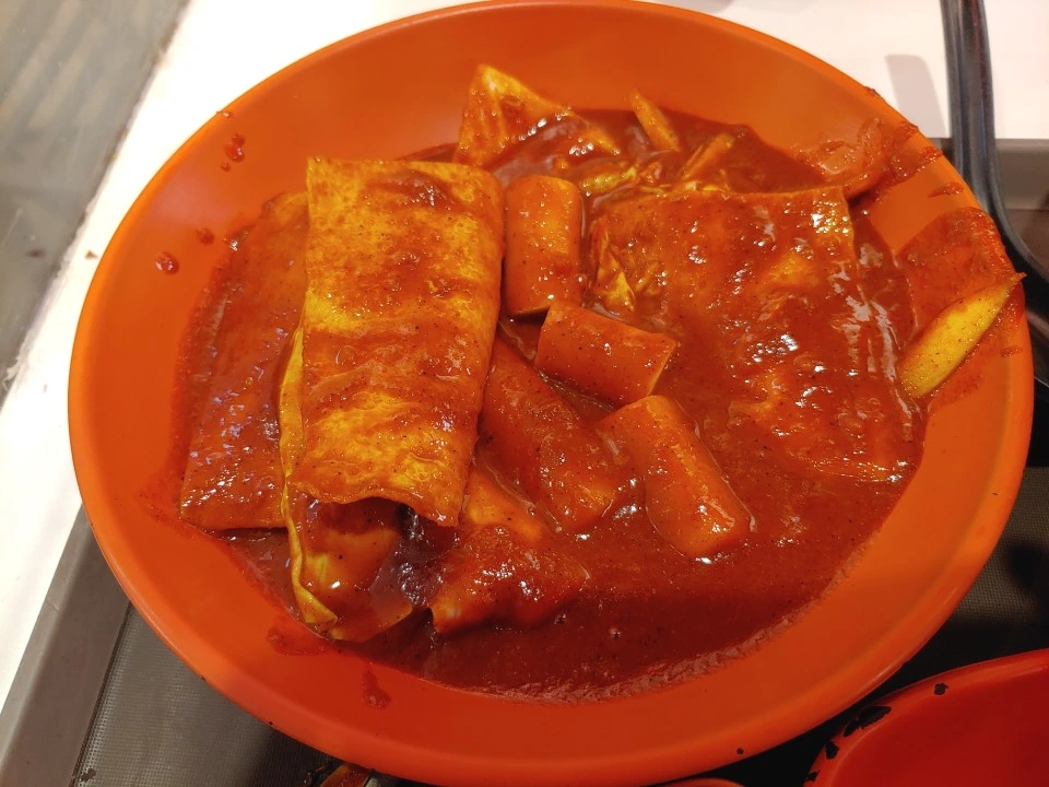 지옥에서 흐르는 용암을 본다면 이런 색이겠거니 싶은 소스 속에서 떡을 찾는다. 길게 주어진 떡을 가위로 먹기 좋게 자르고 한 조각을 입에 넣는다. 의외로 먹을만하다고 생각하는 찰나 괴로움이 밀려온다. 아, 이 정도면 괜찮은가? 하고 한 조각을 더 넣으면 기존에 쌓인 괴로움에 더해서 배로 쌓인 괴로움이 밀려온다. 디바우어러에게 때려 맞는 셔틀의 심정이 이런 것인가. 먹을 때마다 차곡차곡 누적되는 충격이 묵직하게 뇌를 때린다. 찌르듯이 아픈 그런 통증이 아니다. 크게 크게 한 방씩, 정확하게 때린다.