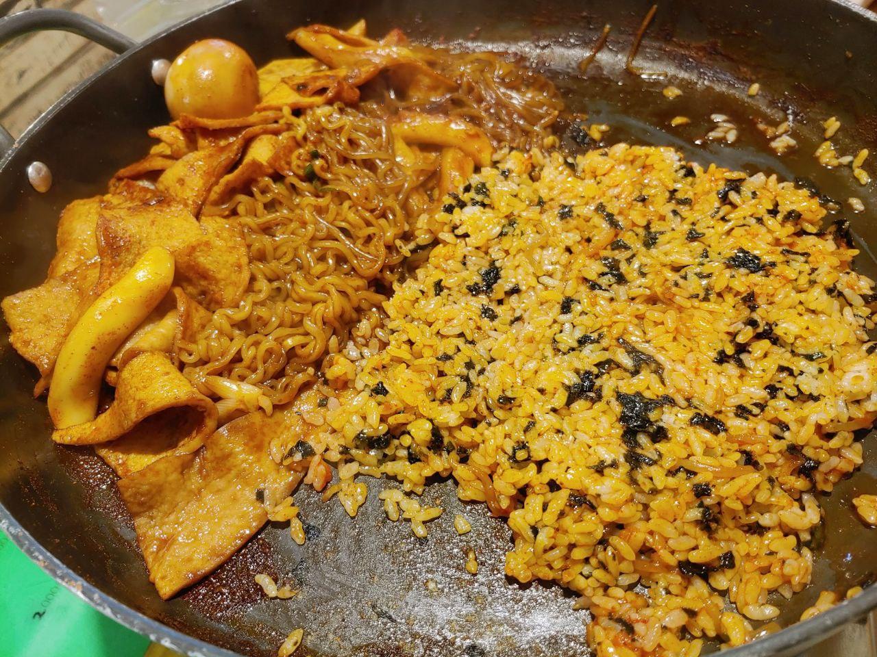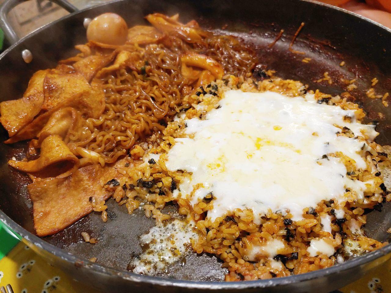 그렇게 경건하게 그의 몫을 바치고 나면 이제 우리 몫이다. 즉떡에서 찾아보기 힘든 이 자작함이란! 조림으로 변해있는 어묵, 양념을 가득 마신 면발, 볶은 것처럼 양념을 입은 떡볶이가 우리에게 내려졌다. 다시 제사장을 부른다. 이제 한편에 볶음밥을 볶고, 치즈를 얹으면, 그래 축제의 시작이다.