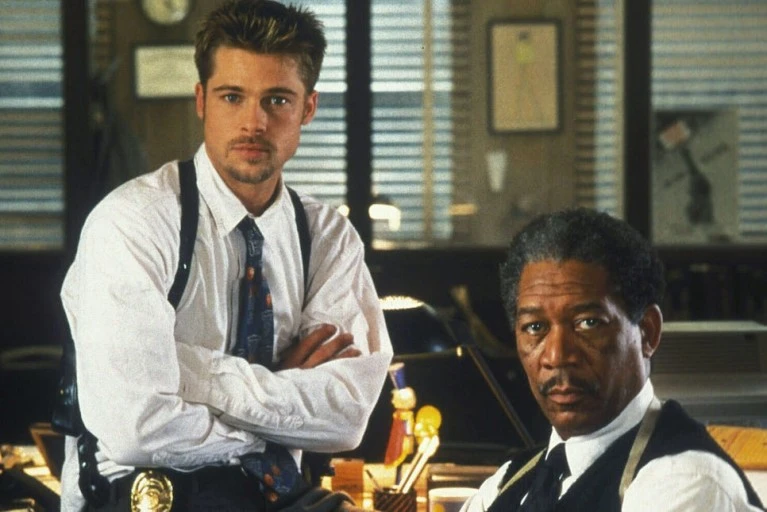 세븐은 7대 죄악을 주제로 한 연쇄살인 사건을 다루며, 두 형사의 공조를 중심으로 이야기가 전개된다. 성격이 정반대인 두 형사는 각기 다른 방식으로 사건에 접근한다. 젊고 열정적인 밀스(브래드 피트)는 감정적이고 충동적인 반면, 퇴직을 앞둔 베테랑 서머싯(모건 프리먼)은 냉철하고 이성적이며 논리적인 수사를 중시한다. 이 둘은 끊임없이 부딪히지만, 사건을 해결해 나가는 과정에서 서로를 보완하며 점점 더 깊은 유대감을 형성한다.