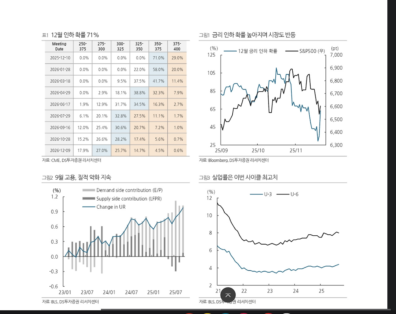 2)노동시장 지표: 최근 미국 고용지표가 과거만큼 강하지 않다는 평가가 있다. 일부 연준 위원들은 “노동시장이 약해지고 있다”라고 언급했다.