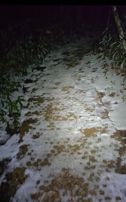눈이 계단을 덮을 정도로 많이 왔는데 밟으면 무릎 밑까지 들어간다. 그래서 앞에서 가신 분들이 밟았던