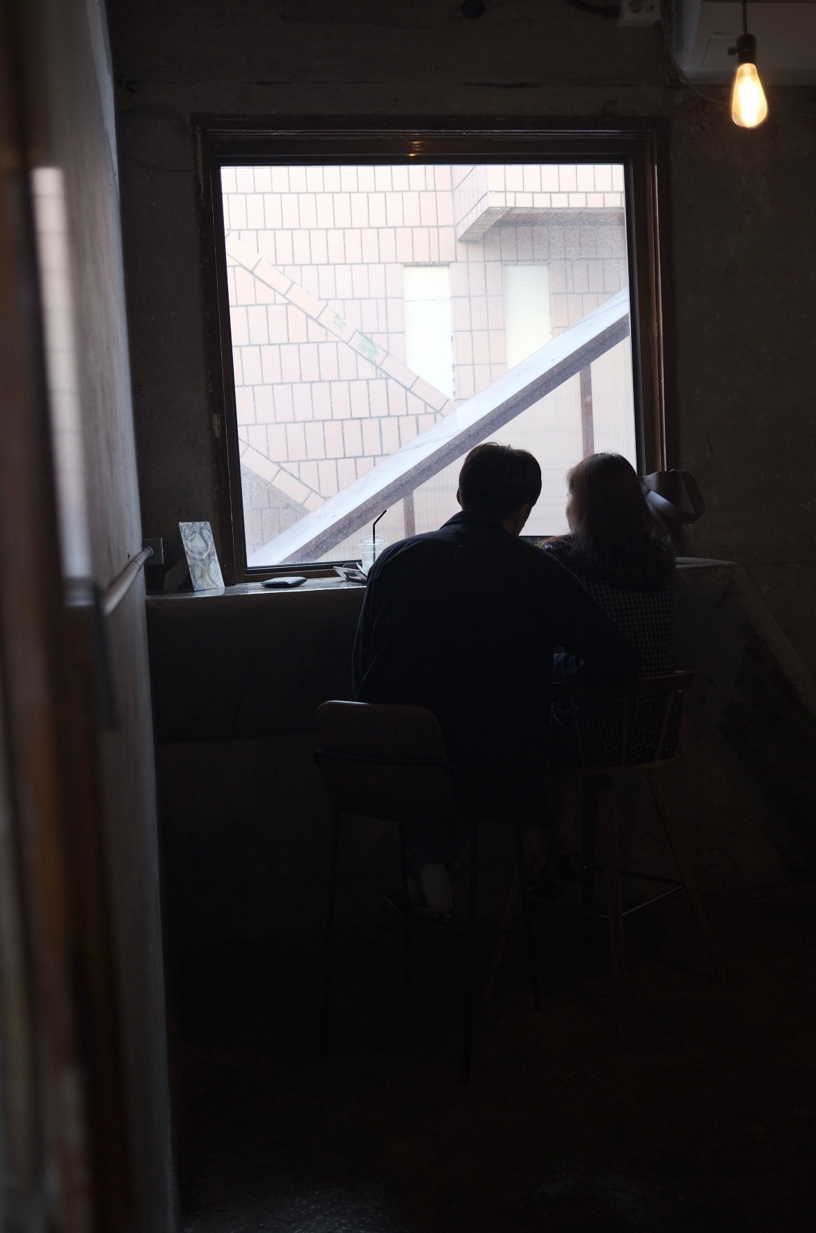 마주 앉은 두 사람의 뒷모습이