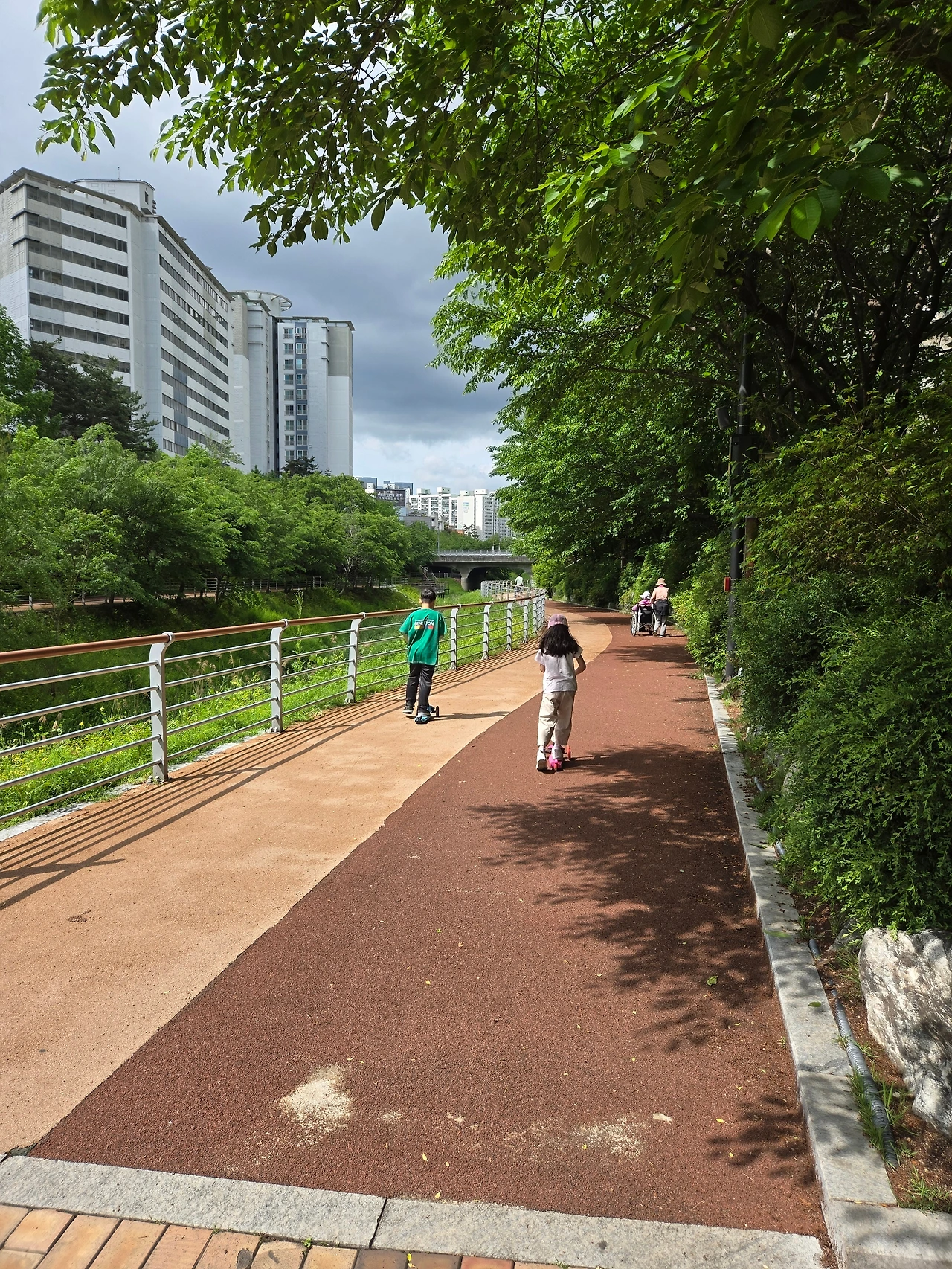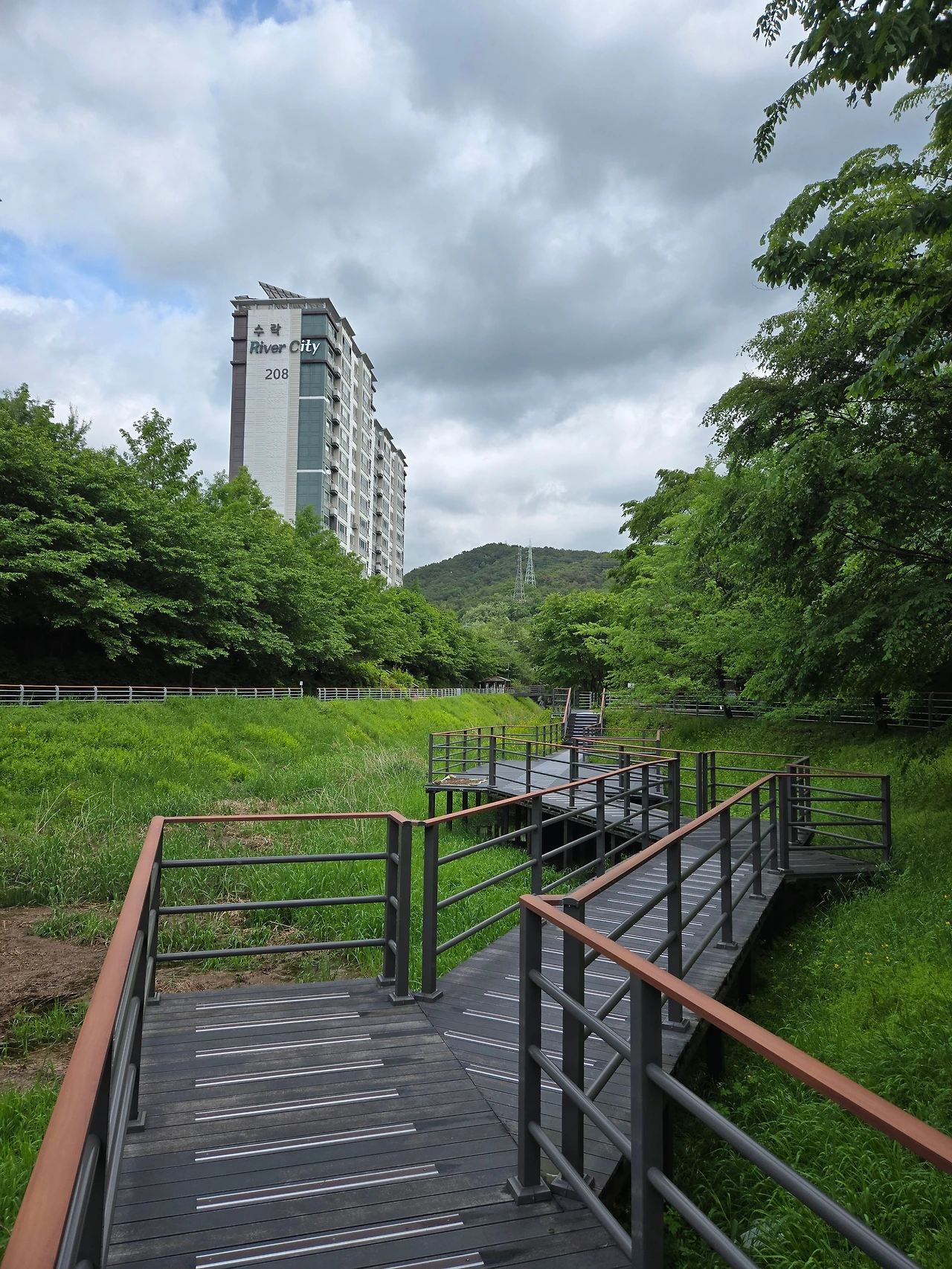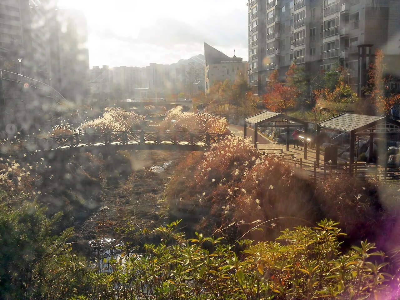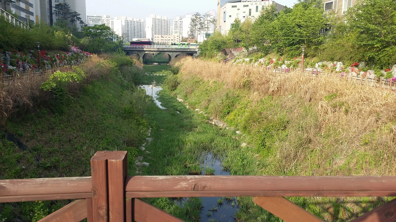 저녁 무렵이면 실개천 산책로를 따라 걷는 사람들의 발소리가 정겹게 들려온다.
