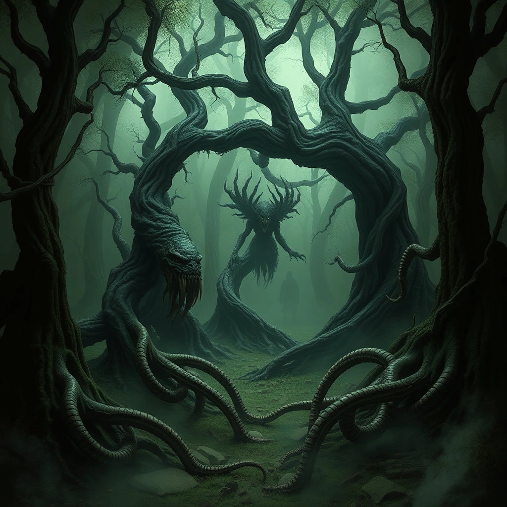 나무들이 뒤틀리고, 땅속에서 알 수 없는 촉수들이 튀어나왔다.