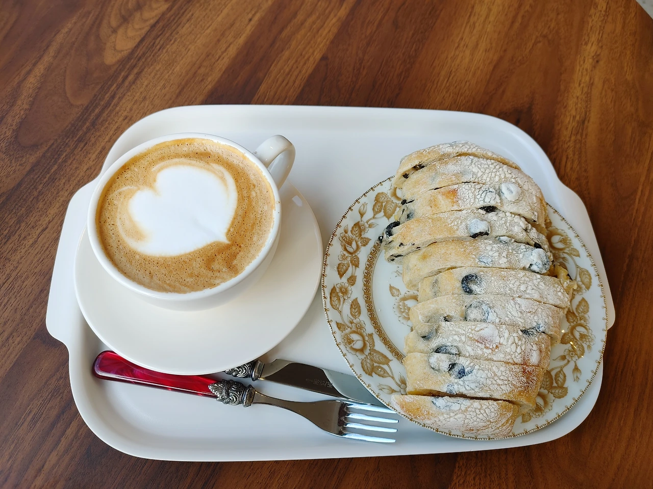지난 연말 여고 동창인 친구와 함께 왔었던 'o'카페에 들렀다. 작년 여름에서 초가을 사이에 새로 문을 연 이 카페는 건강에 좋은 재료로 만든 다양한 빵을 직접 선택해서 음료와 함께 주문하여 오붓하고 편안한 분위기를 즐기며 먹을 수 있는 곳이다. 12월 초에 친구와 함께 왔을 때는 봄날처럼 햇살이 참 따뜻하고 포근했었다. 한 달 여가 지나 해가 바뀐 1월의 오늘, 차디찬 눈발을 헤치고 혼자 와 보니 그때와는 또 다르게 기분이 남다르고 묘한 설렘이 느껴졌다.