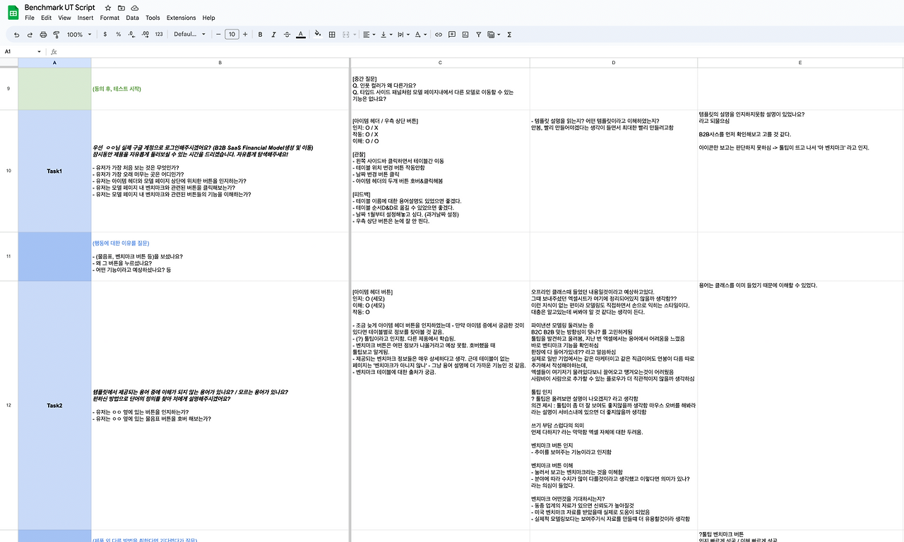 모든 UT는 최대 30분으로 제한해요. 30분 이상이 되면, 참여자 모두의 집중력과 체력이 떨어져서 긴 시간을 진행한다고 해도 유의미한 인사이트가 나오지 않더라고요. 그런 의미에서 시나리오를 철저하게 준비하는 것도 무척이나 중요했어요. 테스트 환경 속에서 최대한 사용자의 실제 행동을 이끌어내고, 우리가 검증해야 하는 것들에 대한 답을 알아낼 수 있는 질문이 무엇인지 생각하는 과정에 많은 시간을 썼어요. 많은 시행착오를 겪기도 했고요. 아직까지 어려운 부분이기도 합니다.