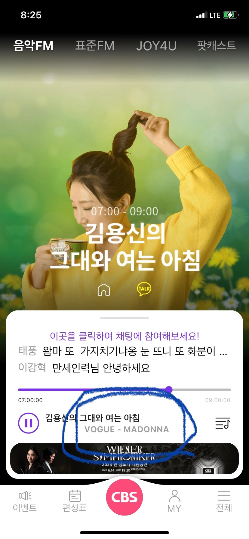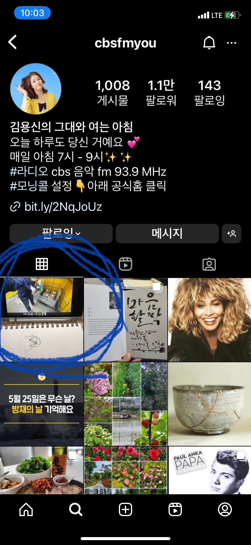 아침에 CBS김용신의 그대와 여는 아침인스타에 내얼굴과 그림 작업하는 사진이 올라와서(몇일전에 보냈던 사진) 신기해서 문자 보내며 신청곡 보냈더니 얼마 안되서 마돈나의 보그가 나오는게 아닌가(얘—!!!! 환호를 질렀음 ㅋㅋ) 사연 소개는 내가 차에서 내려야 해서 못들었음.