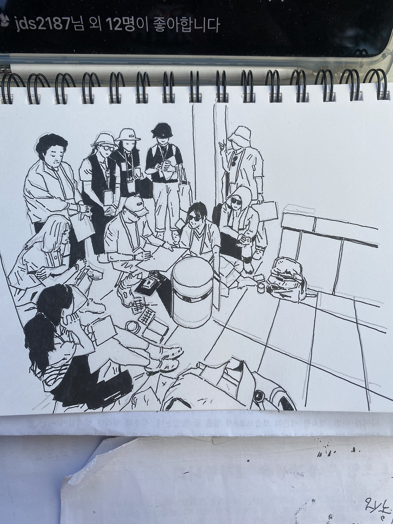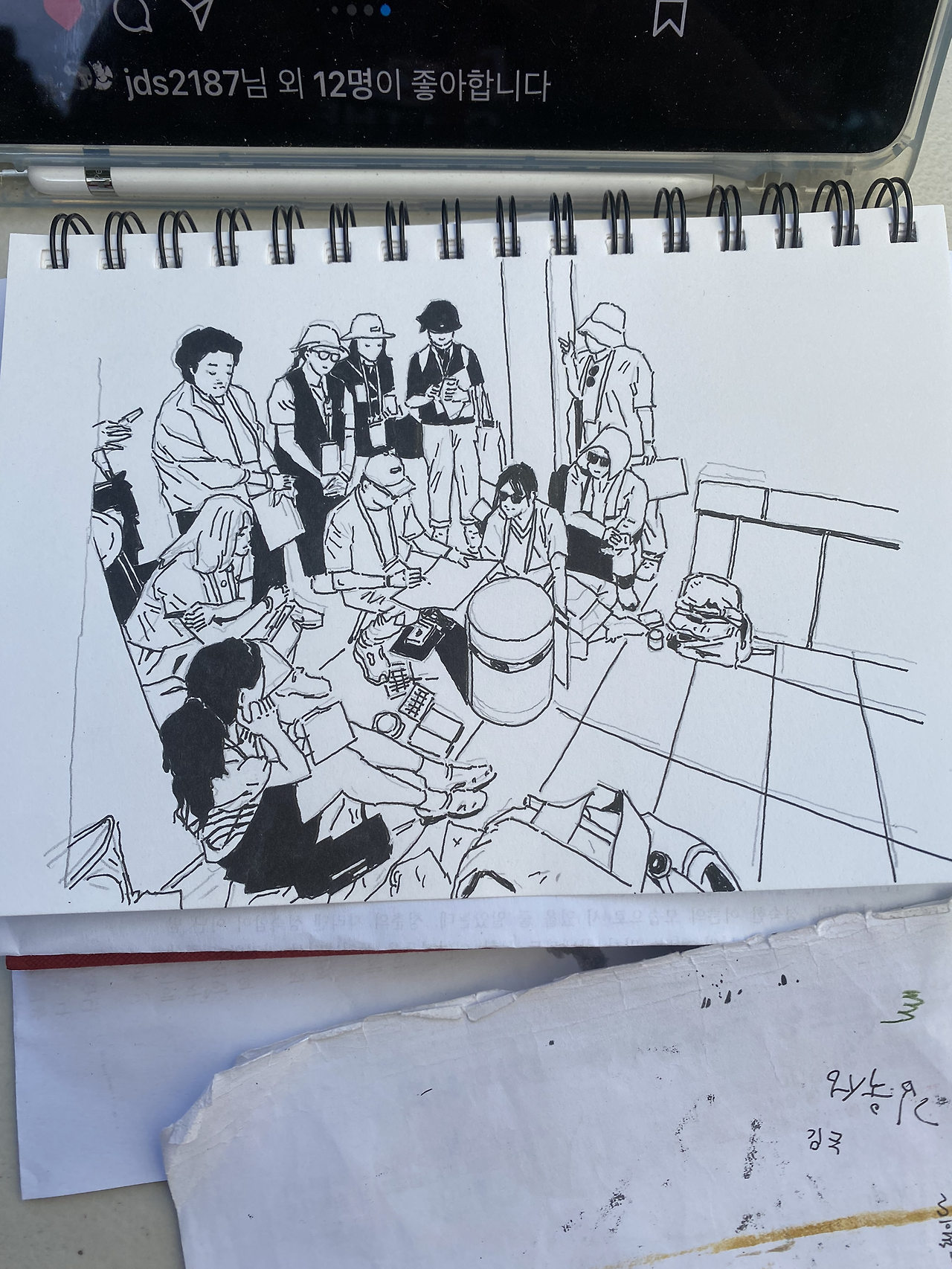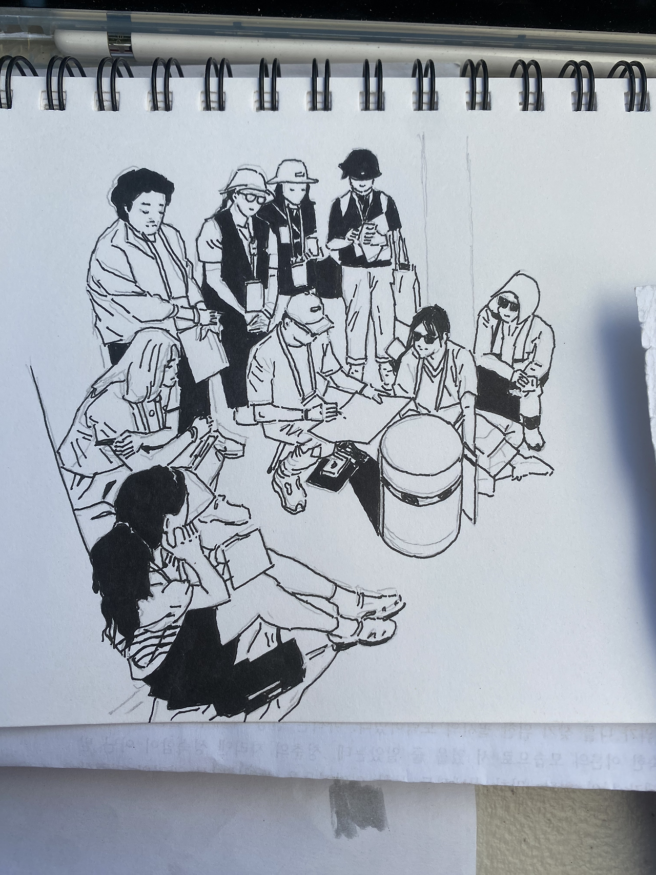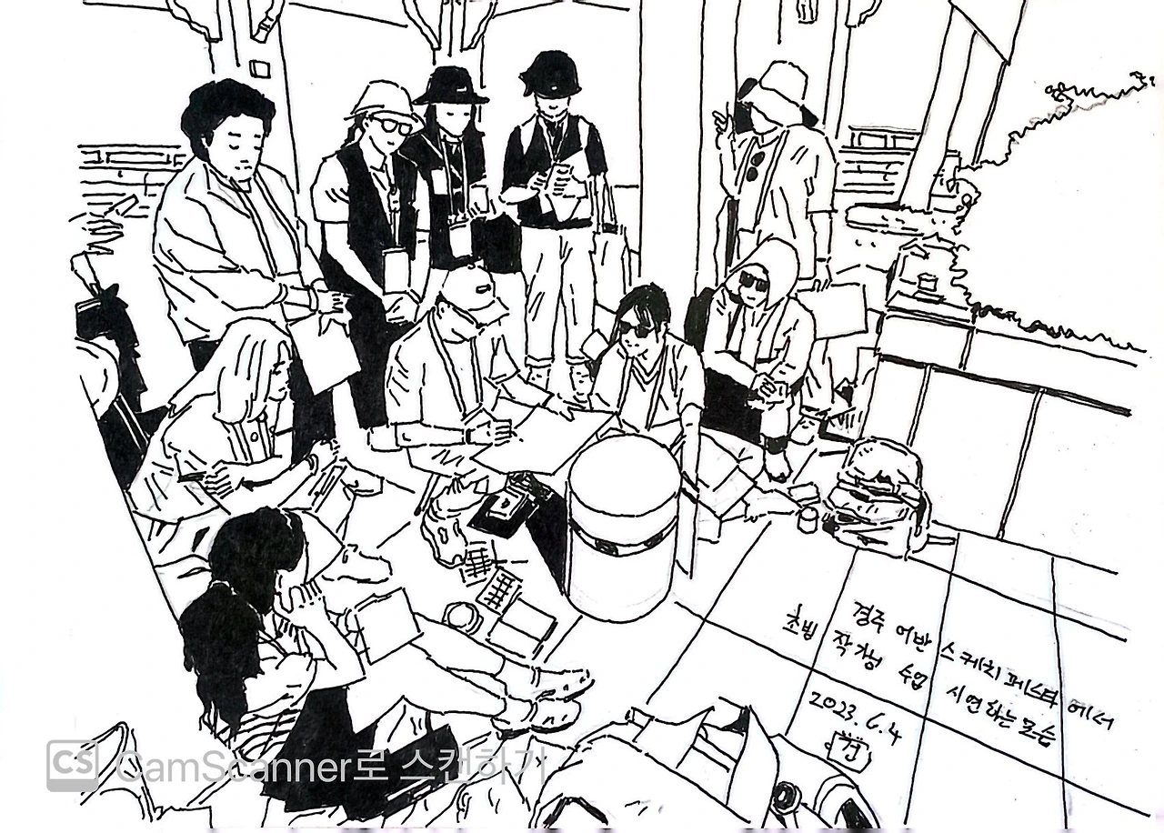 5회 경주어반스케치에서 초빙가님 시연 수업 듣는 학생들^^