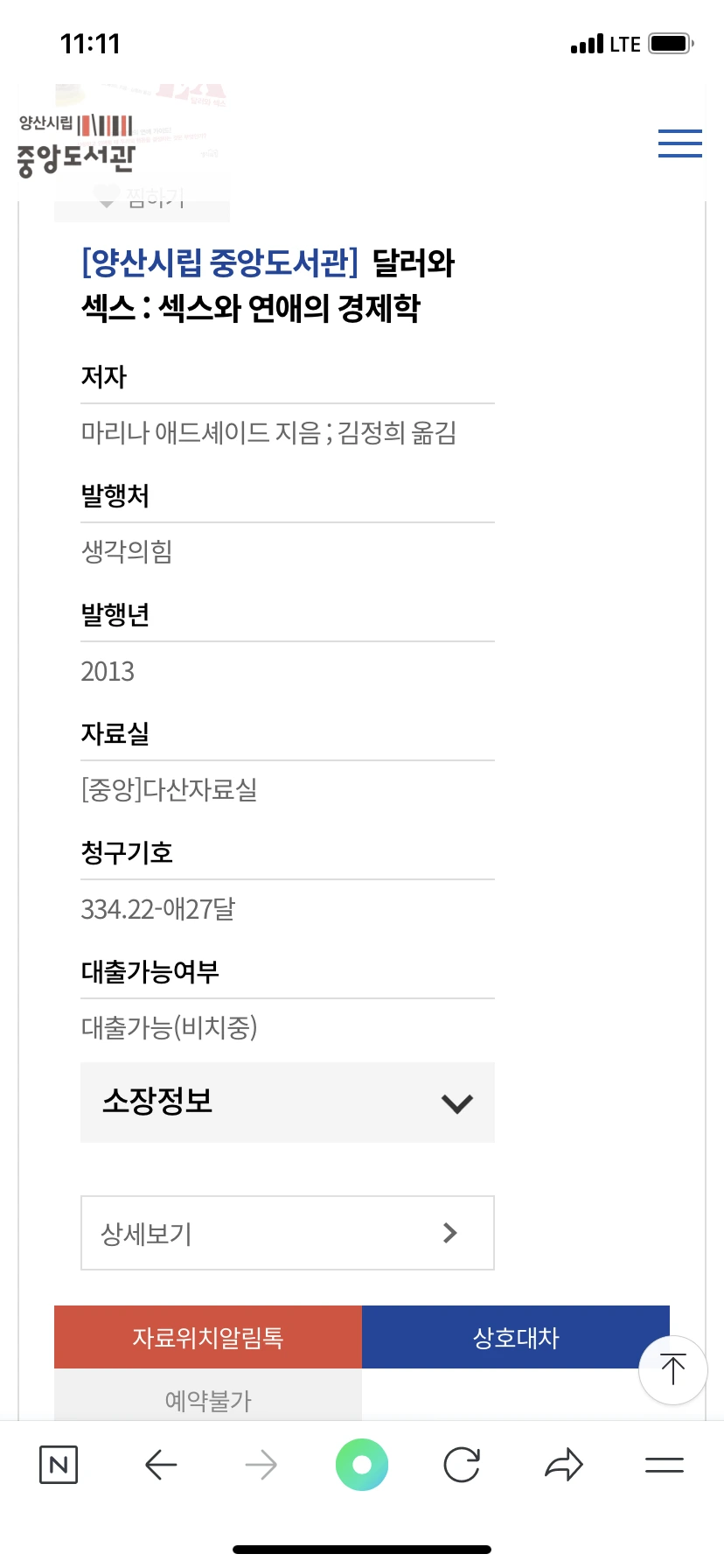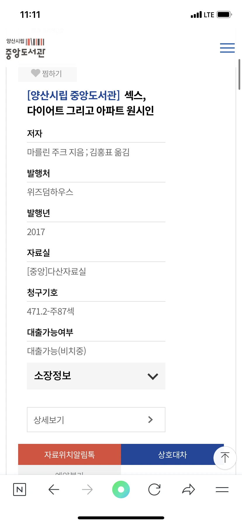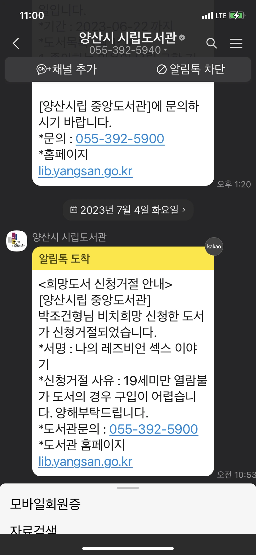 양산중앙도서관 희망도서 신청 거절 문자 받다- 황당해서 전화함