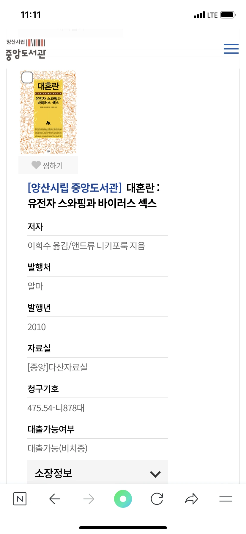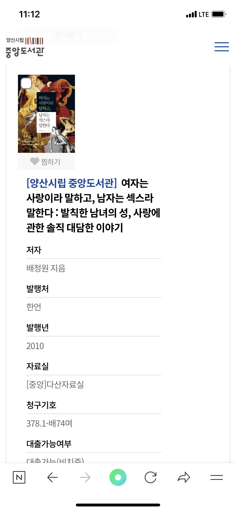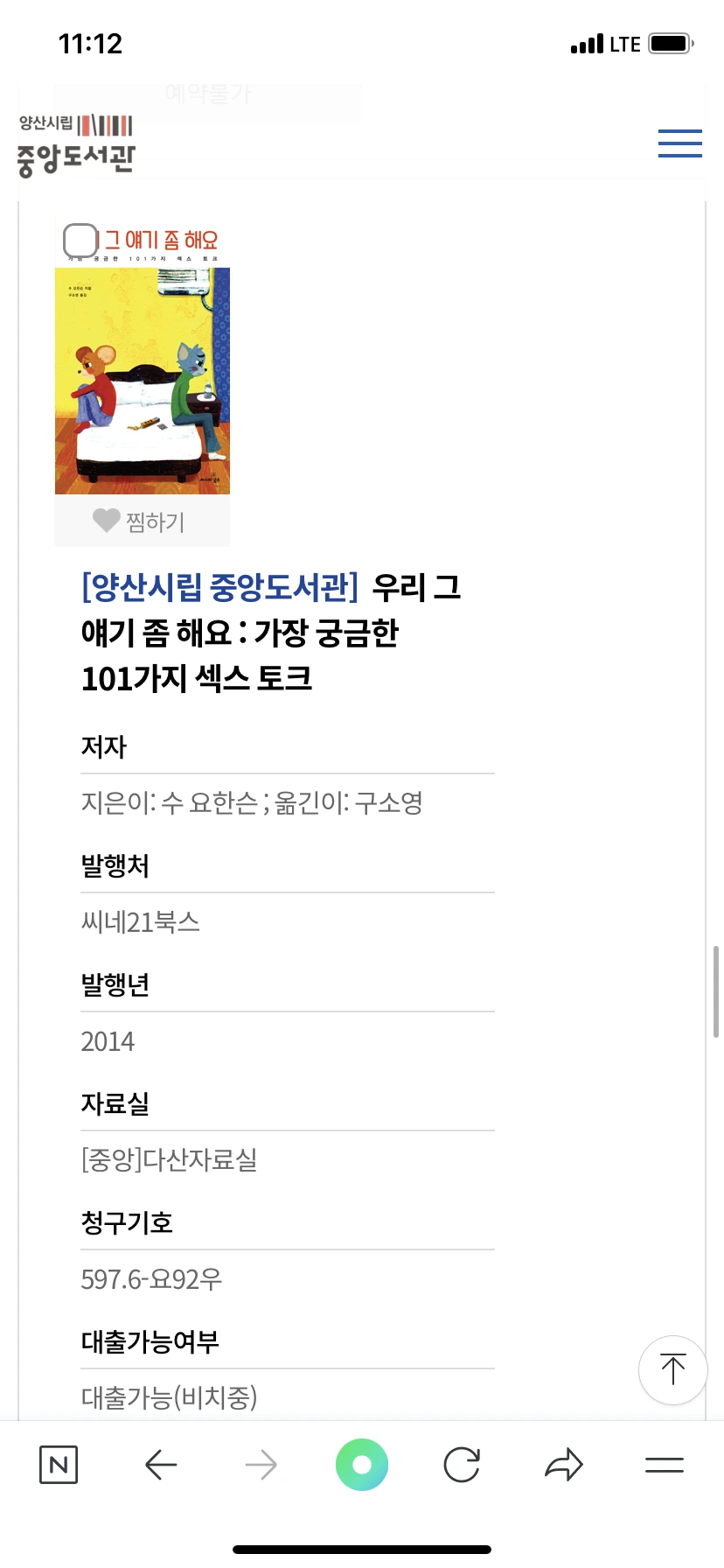 양산중앙도서관 희망도서 신청 거절 문자 받다- 황당해서 전화함