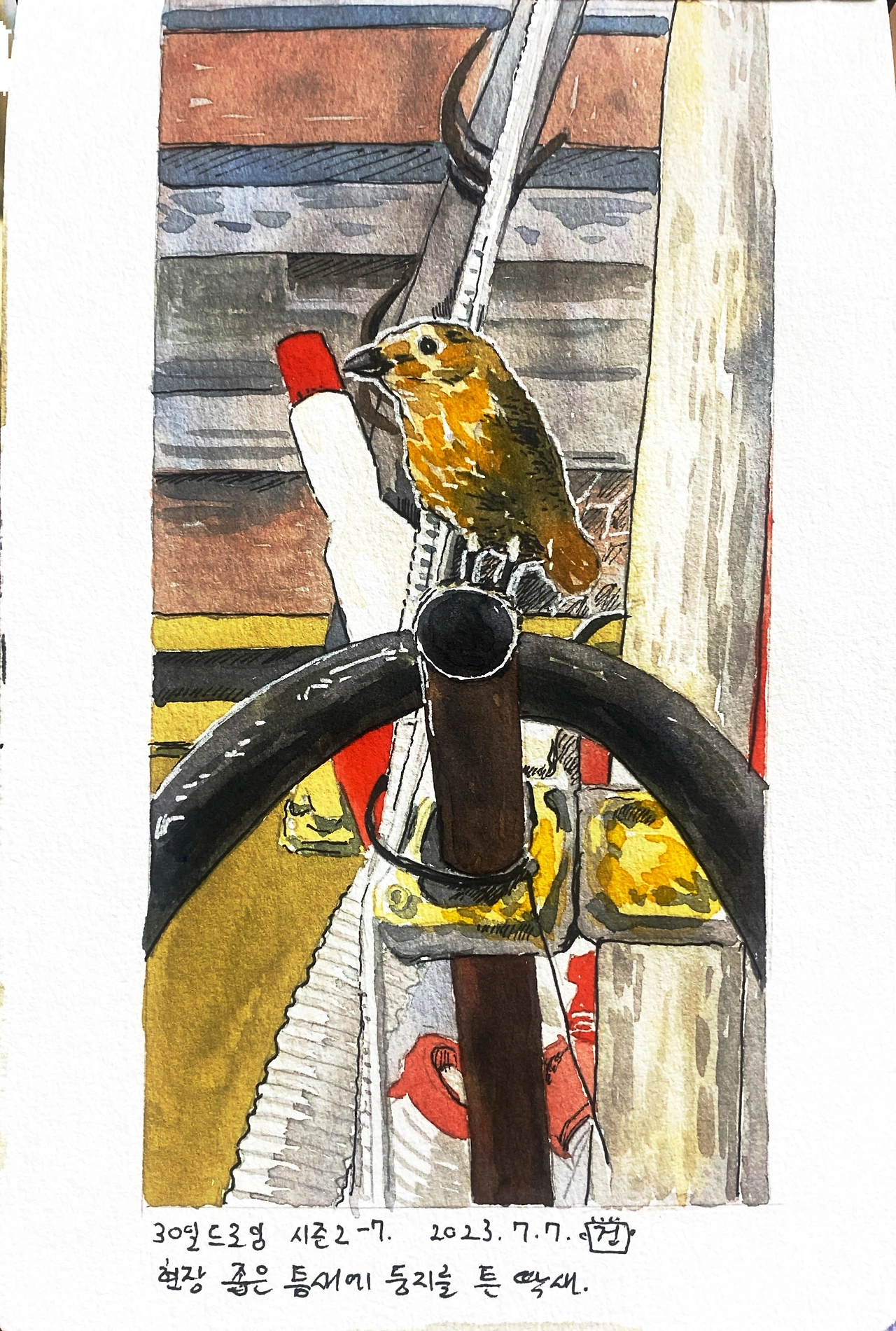 현장 좁은 틈새에 둥지를 튼 딱새(30일드로잉 시즌2-7)
