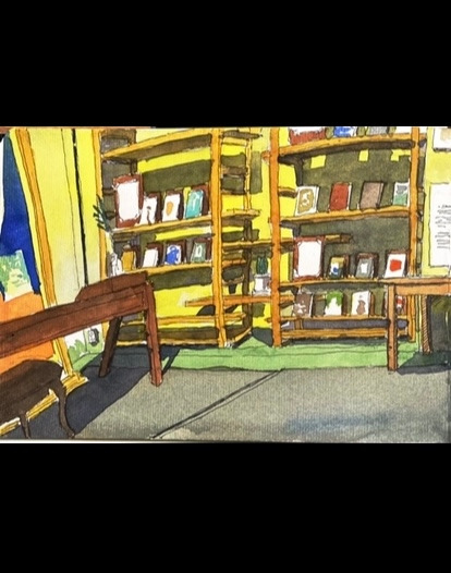오선영 작가님은 부산출신의 부산을 배경으로 소설을 쓰시는 작가님인데, 작가님의 글이 좋아서 북토크에도 몇번 참석한 적이 있다. 이번에 구백제병원 건물(1층 브라운핸즈 커피)에서 어반스케치 벙개를 하는데, 작가님을 포함한 3인 작가의 전시가 구백제병원 2층, 창비부산에서 열리고 있다는게 아닌가. 반가운 마음에 모임 시간보다 1시간 30분쯤 일찍 도착해 작가님의 전시만 천천히 둘러보았다. 작가님의 전시를 축하 드리고 싶은 마음으로 2층 전시장을 현장 드로잉 하기로 했다. 원래는 구백제병원 외관을 그릴 생각이었다.