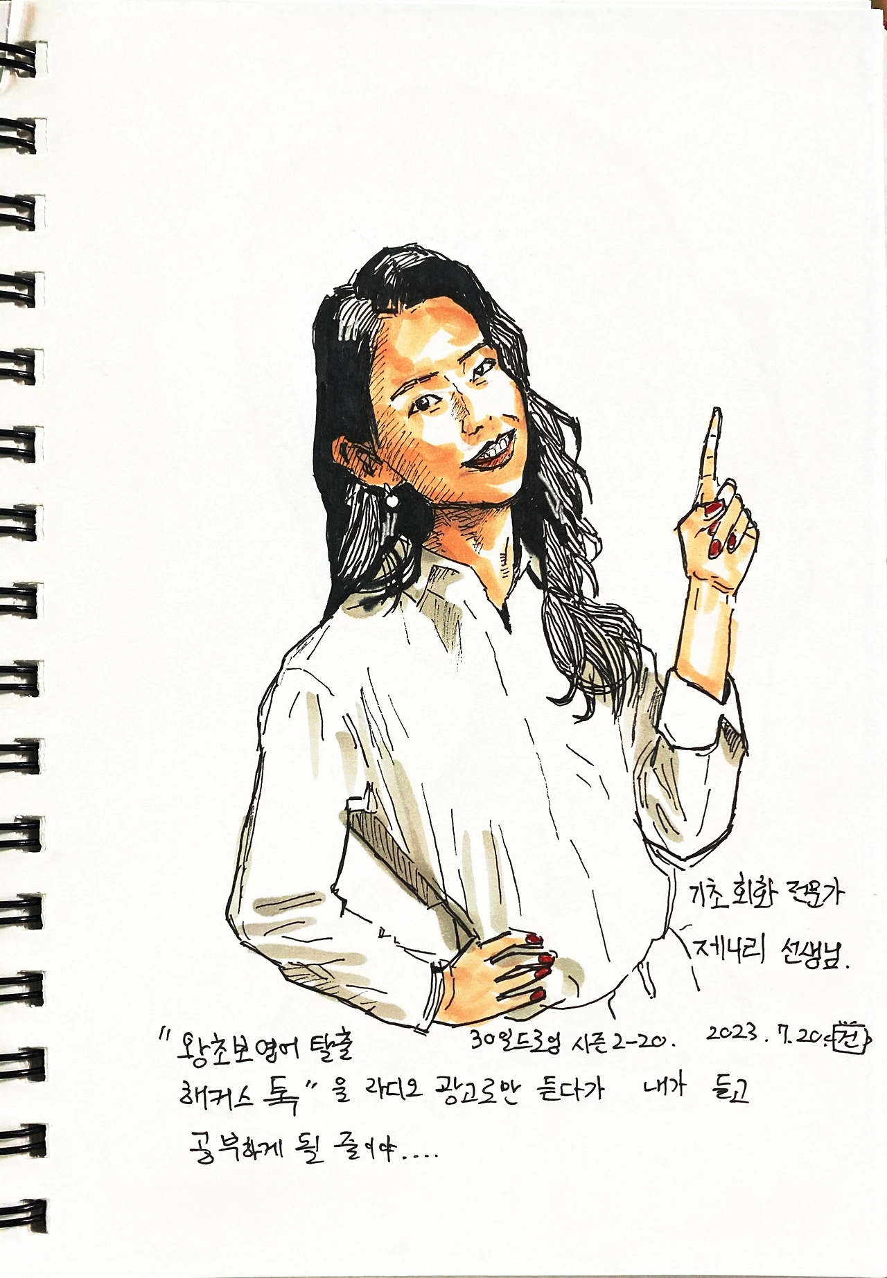 늘 라디오에서 광고로 듣던 “왕초보탈출 해커스톡~” 방송을 내가 찾아 듣게 될 줄은 생각도 못했다. 제니리 선생님은 전문가답게 속도감있고 딕션 넘치는 진행으로 멋지게 수업을 하셔서 재미있다.