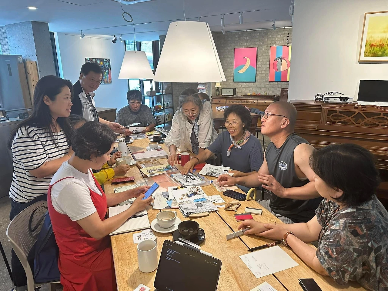 그들이 자신의 자녀가 발달장애인이라는 걸 알게 되었을때의 망막함, 육아의 어려움과 혼자라는 고립감 등등의 감정이 크게 느껴져 선생님들의 이야기를 듣는데 자주 눈물이 나서 눈물을 닦았다. 돌아가면서 자기 소개를 하시길래 나도 이야기를 하고 내 그림 작업들도 소개해 드리며 명함을 돌렸다.