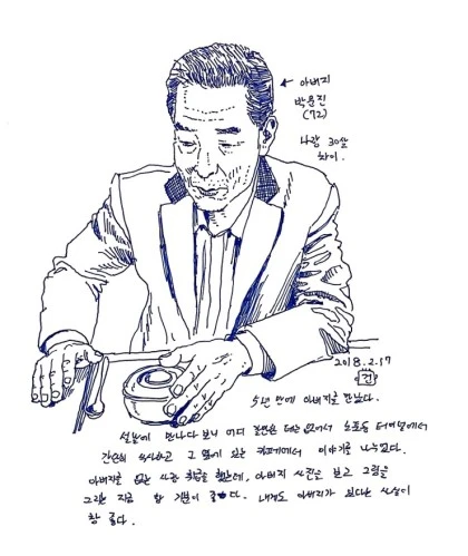 나는 아버지쪽 친척들이랑도 교류가 없어 아버지의 어릴적 시절 이야기를 잘 모른다. 여러 형제 속에서 어떻게 어린 시절을 보냈는지, 어떻게 배를 타게 되었는지, 그가 왜 대순진리회에 쉽게 마음이 홀려 버렸는지 나는 알지 못한다. 내가 만약에 아버지랑 매일 부댖기며 얼굴을 보고 살아야 했다면, 어쩔수 없이 나를 위해서 아버지를 이해하려고 노력했을지도 모르겠지만, 나는 아버지와 같이 살지 않고 만나지도 않는다. 그러니 궂이 아버지에 대해서 애를 써서 알아야 할 필요는 없다.
