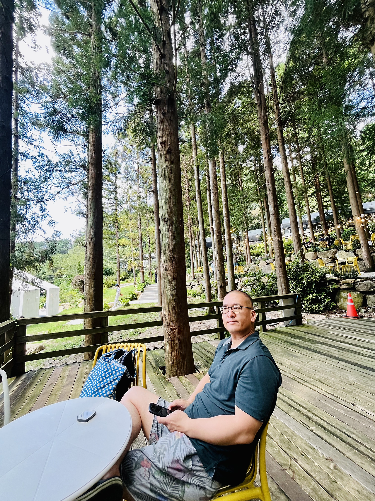 숲성애자인 김비님의 의견을 반영하여 금정구 북문로에 있는(정말 산속으로 좁은길을 올라와야 있는 장소입니다) 카페 아이리에 왔습니다. 건물도 멋지지지만, 우리는 숲속 테이블에 자리를 잡았네요. 저야 숲에 별 감흥이 없지만, 짝지가 좋아한다면 저도 좋습니다. 숲성애자인 분들에게 추천해 보는 카페 입니다. 참가로 장소값이라 그런지 음료가격과 빵가격이 쎈편인데, 그렇게 맛이 있는지는 모르겠습니다만, 숲속에 있는 것만으로도 김비님이 행복해 하셔서 저도 행복합니다.