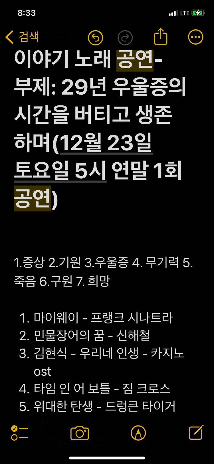 저의 첫 공연이자, 딱 한번 하는 공연에 여러분을 초대하니 관심있는 분은 미리 날짜를 비워두고 있다가 12월초에 공연 공지가 뜨면 신청해 주세요^^