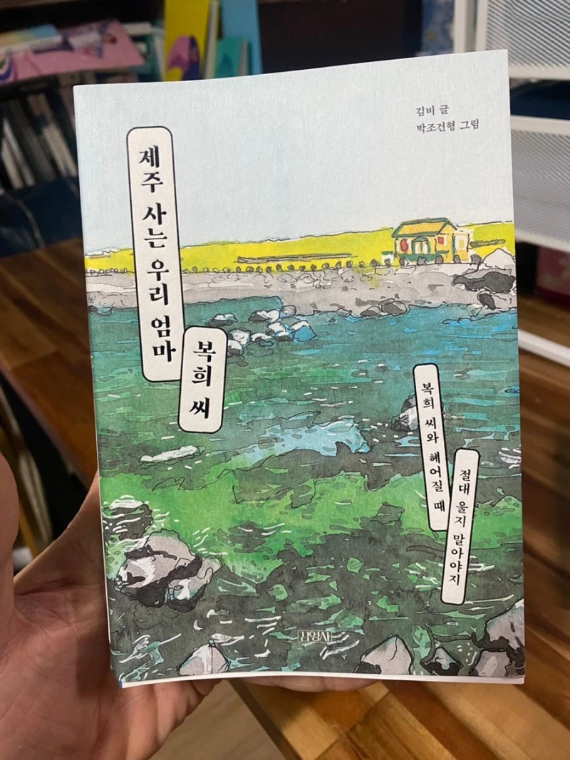 처음으로 다시 읽어본 책은 <제주 사는 우리 엄마 복희씨>. 네권중에 제일 마지막에 만들어진 책이다. 2020년 10월에 출판되었고, 2020년 봄에 제주도에서 책 작업을 했다. 너무나 잘 살고 있는 지금과 달리 책 작업을 할 그때의 나는 1년 넘게 심한 우울증으로 저공비행중이었다. 그래서 그런지 그 때의 힘든 내가 생각이 나서 자꾸 눈물이 났다. 그리고 이야기 중간에 클라이막스 이야기가 있는데, 그 부분을 읽는데 많이 힘들었다.