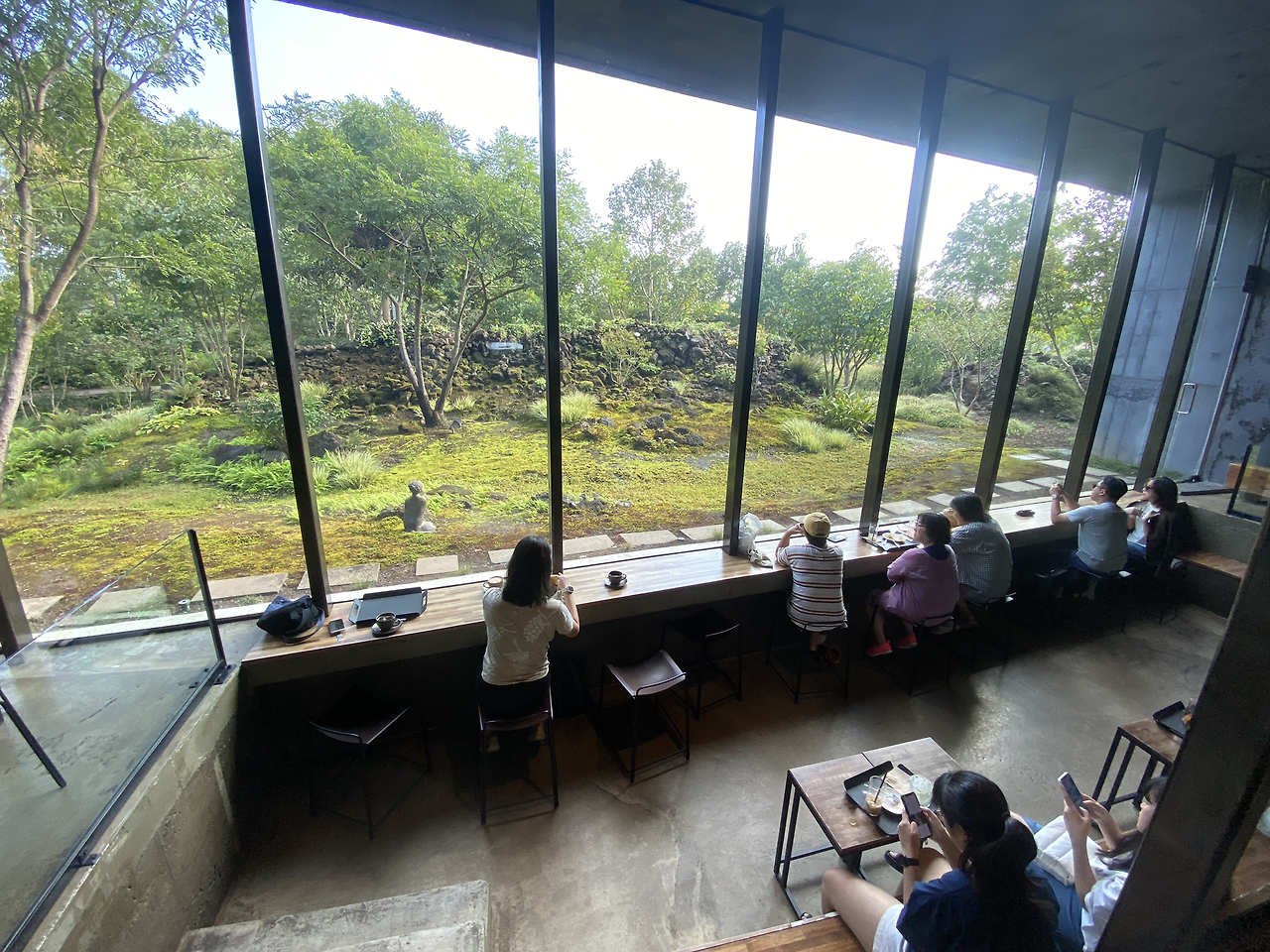 이제 중산간을 지나 서귀포에 있는 베케라는 카페로 갔다. 식물성애자들이 좋아할만한 정원이 잘 꾸며진 카페. 카페 안에서 이끼도 잘 가꿔진 창문 밖 풍경을 보고 멍을 때리기도 했다. 짝지가 워낙 쉬이 피로해 지는 몸이라 어서 눕고 싶어해서 오래 머물진 못했지만, 조경일을 하는 설혜씨는 그 카페 정원을 만드신 소장님과 인사도 하고 이야기 나누었다.