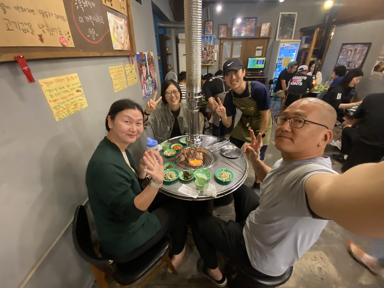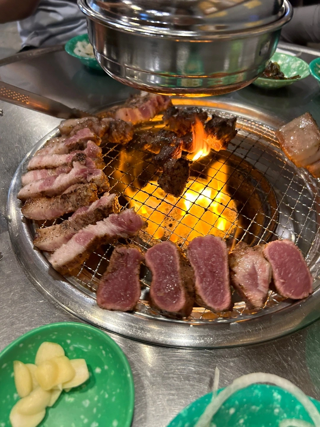 숙소 오는길에 고깃집이 보여 잠시 차를 세우고 물어봤는데, 추석 전날인데 밤 10시까지 한다고 해서 나중에 들리기로 했었다. 19시쯤 들어가니 손님이 꽉차 있었고, 대기할때 할 수 있도록 오락기가 한자리를 차지하고 있길래 기다리는 동안 잠시 추억의 비행기 오락을 하기도 했다. 바로 자리에 앉자서 추천메뉴를 주문했다. 원래는 손님이 직접 고기를 굽는데, 우리가 처음이라고 하니 경기도 일산에서 오셨다는 청년 사장님은 고기 굽는 법을 상세히 설명해 주셨다. 목살과 삼겹살을 시켰는데, 목살을 적당히 구우니 육즙도 나오고 훌륭한 맛이라 목살을 추가로 더 주문해 먹었다. 저녘을 든든히 채우고 짝지는 숙소로 돌아가 샤워를 하고 설혜씨와 나는 배도 꺼줄겸 가볍게 모슬포항까지 다녀왔다. 우리 부부는 매주 챙겨보는 나는 쏠로 재방송을 봤다.