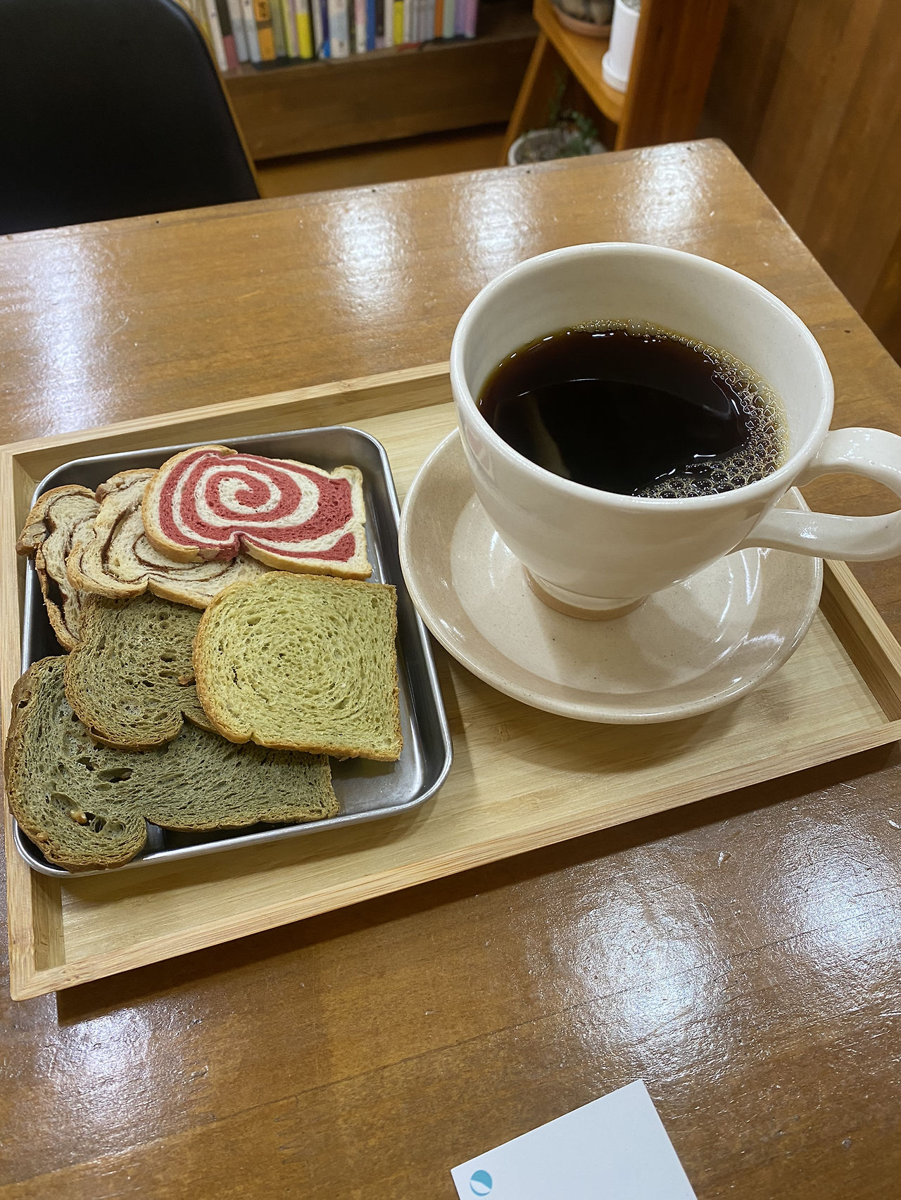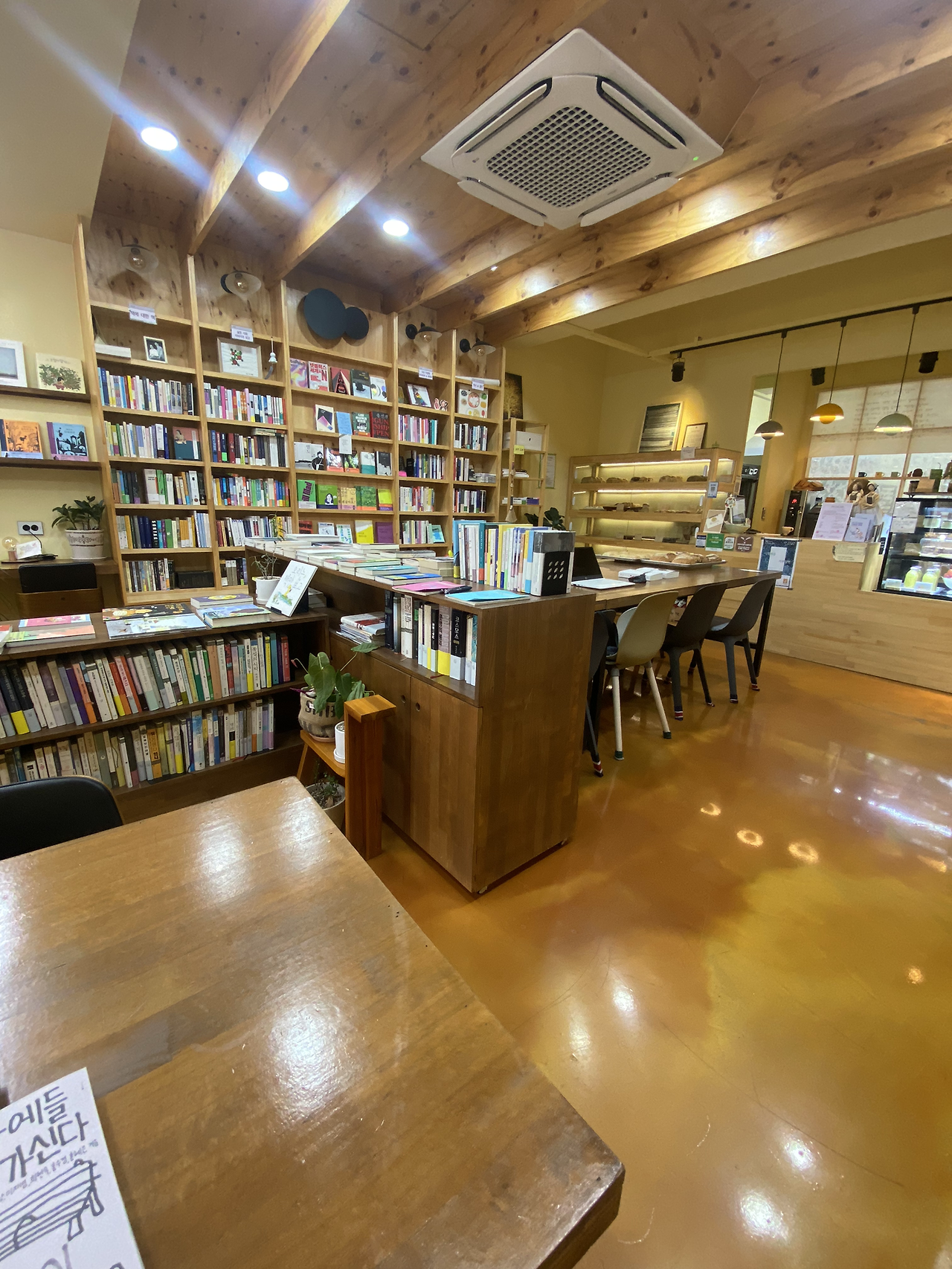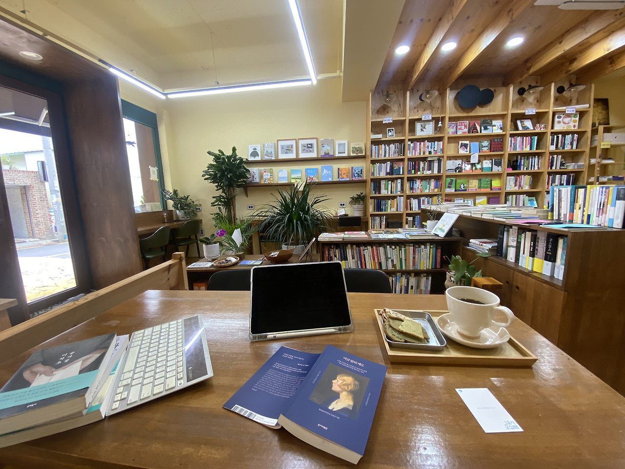 울산대공원 옆에 위치에 있어서 대공원에 주차를 하고 걸어서 몇분 거리이다. 공간을 들어서는데, 빵의 고소함이 느껴진다. 사장님은 한겨레 신문을 구독하다보니 아주 오래전에 6개월잠시 연재했던 나의 일상드로잉 글과 그림을 보셨고, 짝지의 달려라 오십호 글도 보셨다고 해서 이미 우리 부부를 알고 계셨다. 이미 알고 계시다는데 감사함이 들어 시간내어 오늘 들린 것도 이유중의 하나이다. 책 두권을 구매했고<그여자가방에들어가신다><처방전없음>, 한권의 책은 나눔을 하고 있는 서가에서 한권 골랐다.<이중작가초롱>.