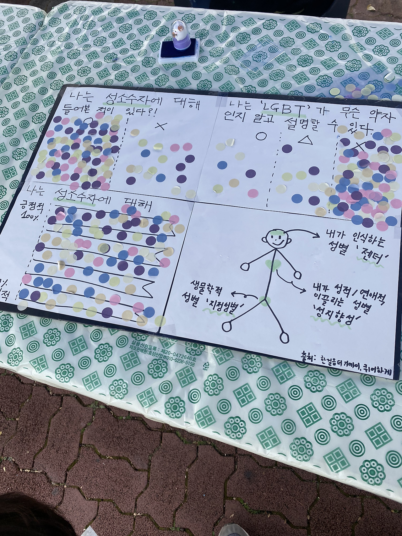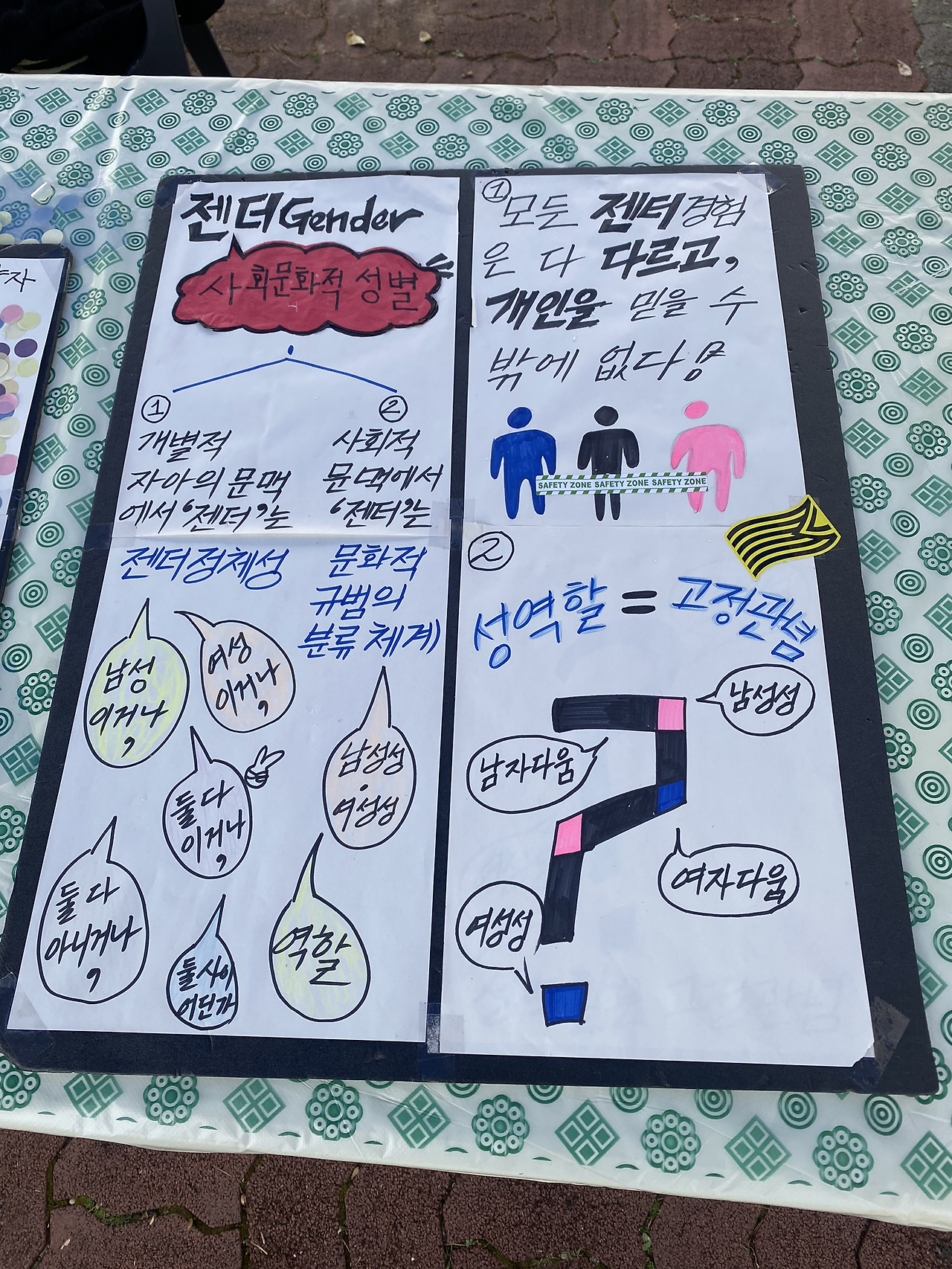 어제 최현숙작가님 북토크를 인연으로 알게된 너른벽 사장님이 오늘 경주 성평등 행사에 참여한다고 해서 나도 구경삼아 잠시 들렀다. 젠더에 대한 설명과 퀴어에 대한 인식조사.