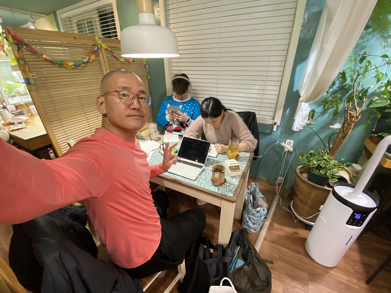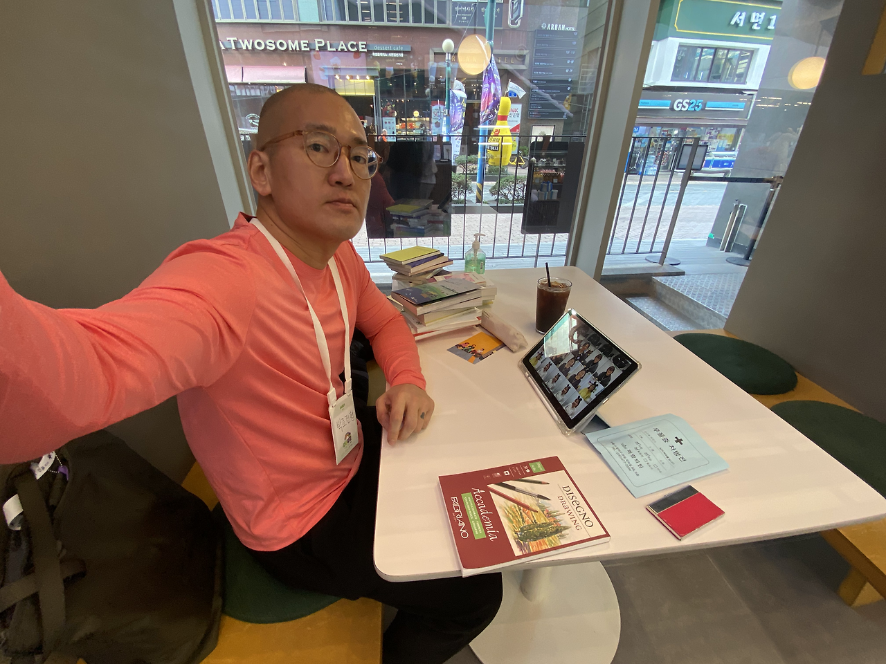서울에서 오신 부부 작가님들과 서면 맛집 반핀(대만음식 전문점)에서 웨이팅을 하고 맛있게 먹었습니다. 보통은 웨이팅을 안하는데, 웨이팅이 아깝지 않은 맛집이었네요. 두 작가님에게 부산의 애정하는 공간을 소개드리고 싶어서 부산 카페아가미에 놀러왔네요. 이부부도 고양이 네마리를 키우거든요. 아가미 사장님에게도 두분을 소개그리고. 오늘 셀러로 8시간 동안 고생하신 두분은 여기 카페에서 힐링의 시간을 가지고 계십니다.