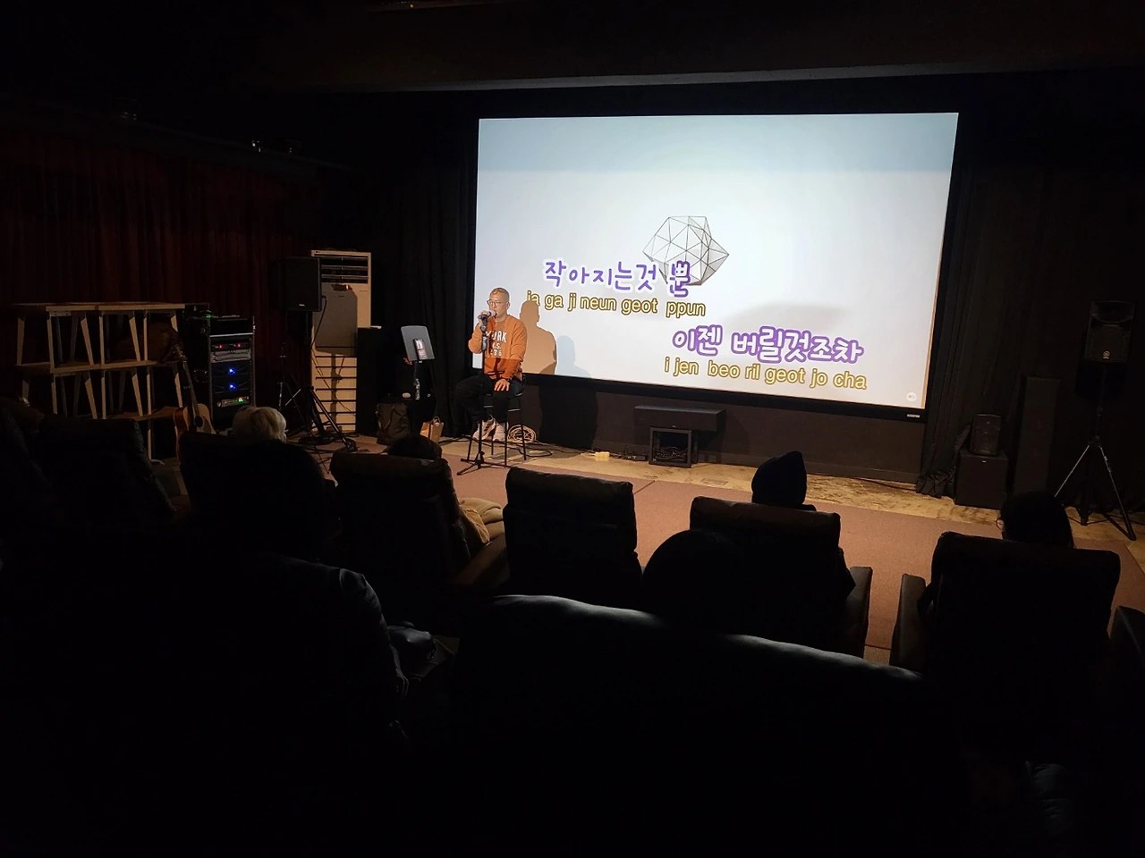 이야기 나눔시간에 어떤 분은, 자신도 작은 공연을 하는걸 꿈꿔봤다고 하셔서 그분이 작은 공연을 하실수 있게 부담안되는 푸시를 해야겠구나 생각했습니다.