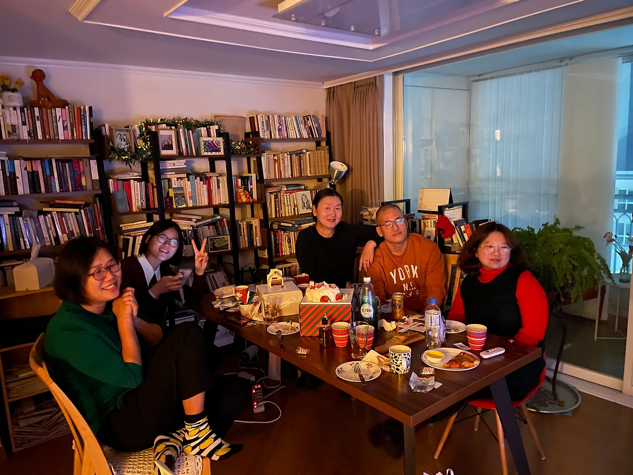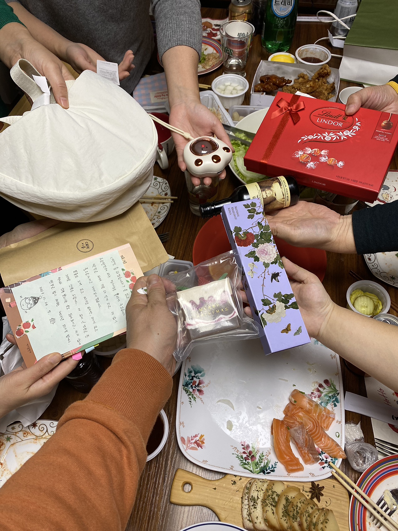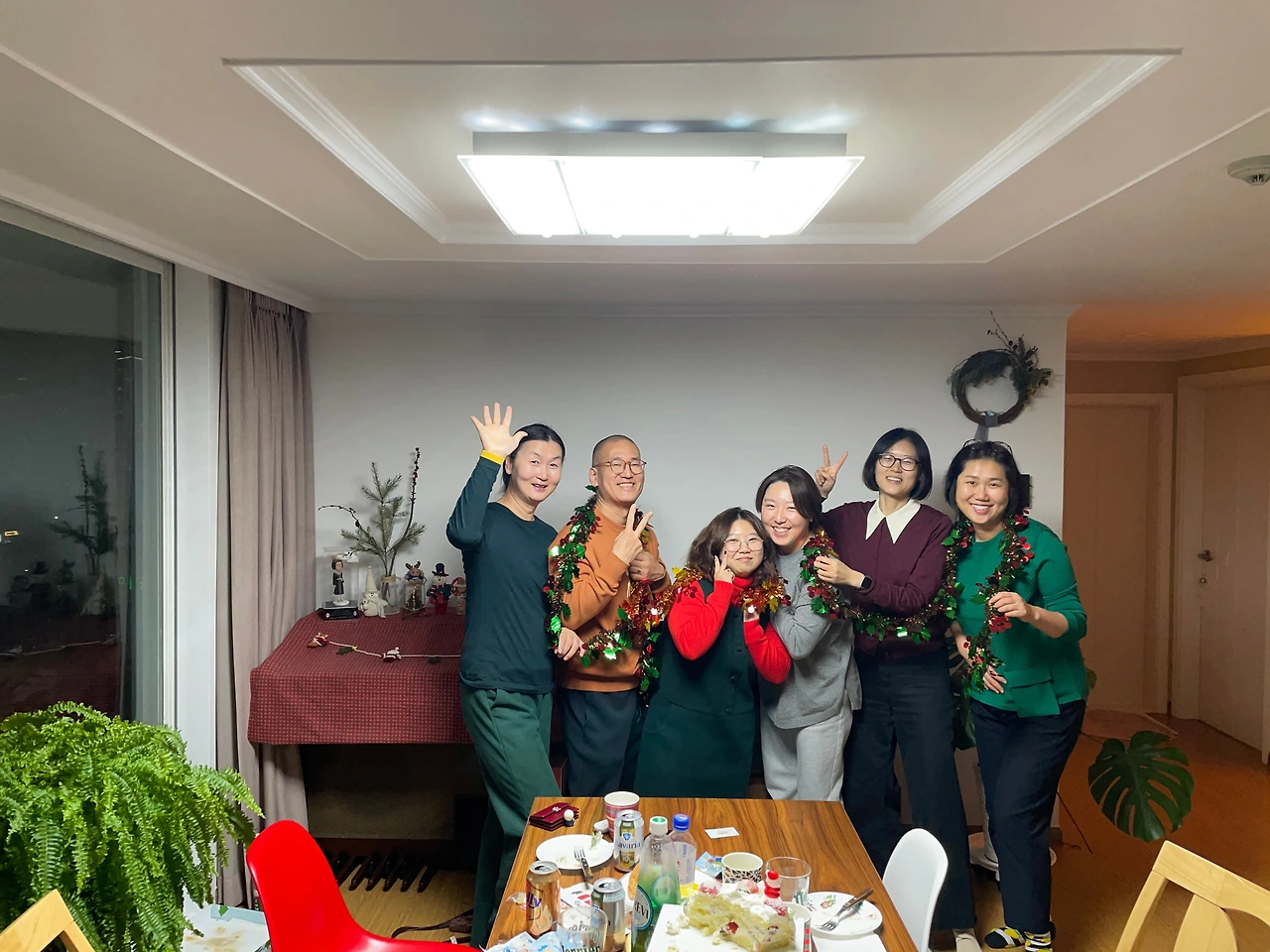 저녁 다섯시에 만나 다섯시간정도 즐겁게 수다떨고 놀았다. 헤어지기 전에 작년처럼 단체 사진을 찍는데, 작년과 멤버가 같았고, 서있는 위치도 작년과 똑같이 섰다. 내년에도 같은 멤버일지 한두명이 늘어날지는 모르겠지만, 3회째 크리스마스 파티가 이어지면 좋겠다. 어제 찍었던 영상과 사진들을 공유하는데, 왠지 이들이 사랑스럽고 이뻤다. 괜히 뭉클하기도 하고. 단체사진을 보는데, 이게 가족아닌가 싶기도 했다. 자녀가 없이도 결혼유무와 상관없이 서로의 삶을 응원하며 나이들어가는 느슨한 관계망의 친구들이 나는 가족같이 느껴져서 감동적인 시간이었다. 소연쌤도 내년이면 사십대에 접어드는지라 이제 40대 50대로 나이가 들어간다.