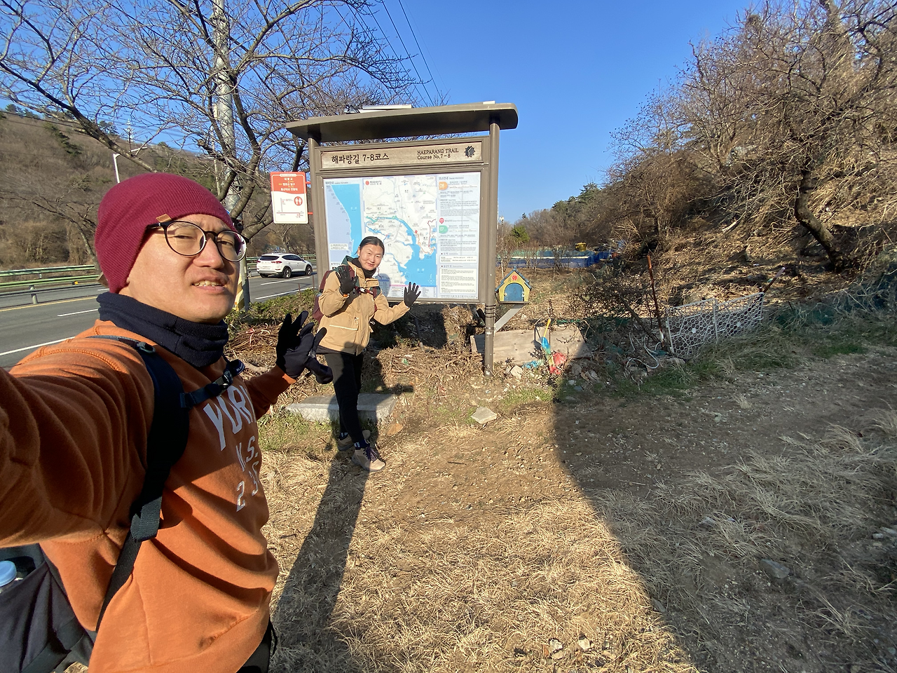 오늘은 참 걷기 좋은 날씨였다. 너무 춥지도 않고. 오늘 코스는 해파랑길 7코스. 저번 6코스가 너무너무 힘들어서 쉬는 시간 포함 6시간 40분이 걸렸는데, 오늘은 거리는 17.3km이고(어플마다 거리가 다 다름) 소요시간은 5시간 30분이라 나왔다.