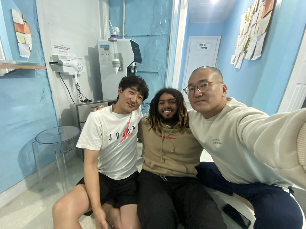 헤어질 결심 OST에 나왔던 정훈희의 “안개”(MIST)도 들려주기도 했다. 뉴멕시코 출신이다보니 멕시코의 메운 음식들을 좋아했고, 한국음식들도 좋아한다 했다. 베스트 넘버 1은 비빔밥, 두번째가 치킨(외국인들에게 치킨은 사랑스러운 음식인가 보다)이라고 했다. 닭강정을 그날 낮에 먹어서 닭강정을 아냐고 했더니 몰라서 치킨과 쉐임이라고 했다. 새벽 1시 30까지 대화를 나누다가 들어가서 자자고 했다.