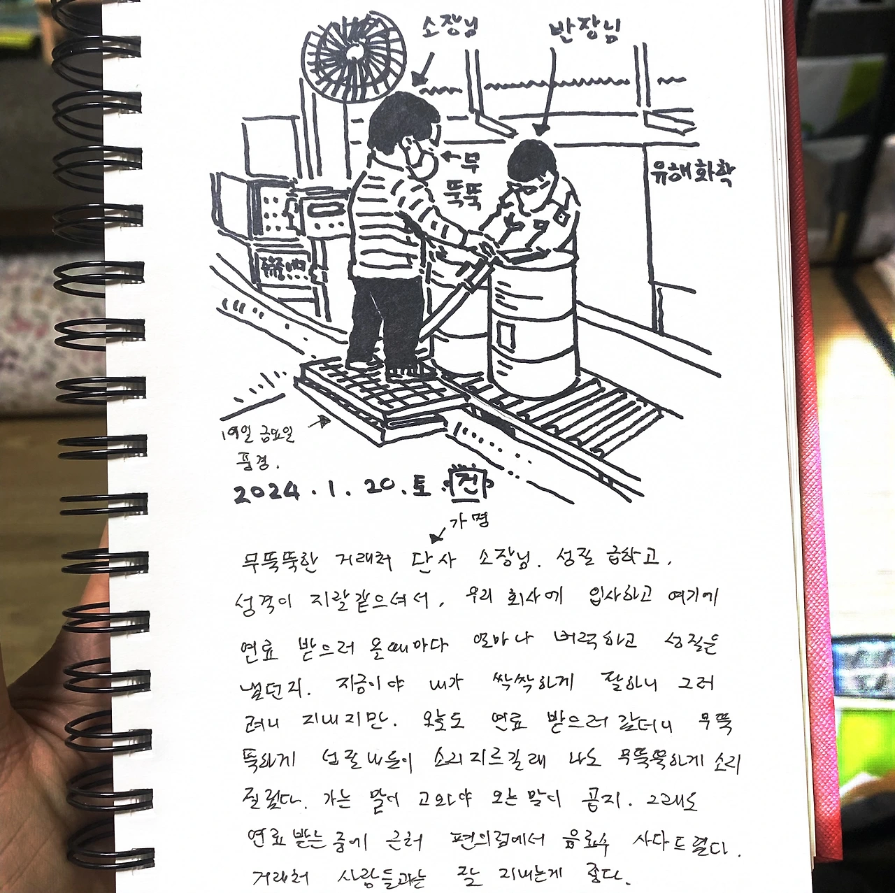 성격 지랄 무뚝뚝한 거래처 소장님(1월 20일 간단그림일기)