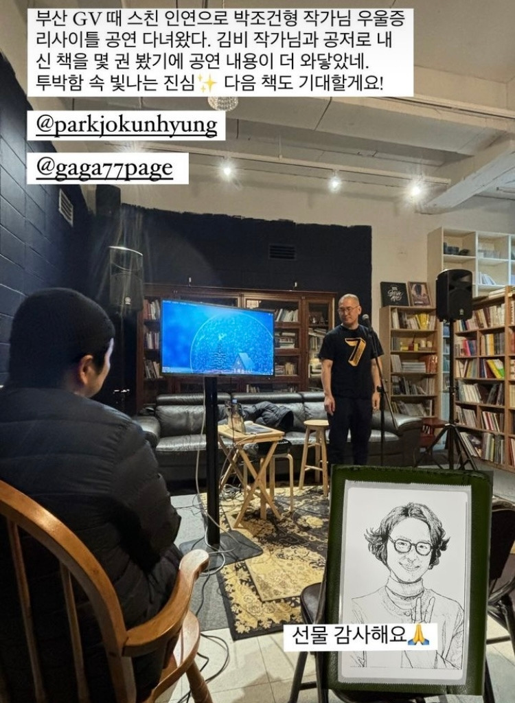 그래도 공연 중반이 지날수록 반응도 해주시고, 노래도 따라 불러주시고 그랬다. 부산에서의 첫공연보다는 나의 우울증에 대한 이야기를 충분히 많이 할수 있었다. 책방 사장님이 이후 시간을 다 비워주셨기 때문에 가능한 일이었다. 여섯파트로 구성된 이야기를 다하고 여섯곡을 부르고 준비한 앵콜곡 두곡까지 다 잘 마쳤다. 그리고 10분쉬고, 이야기 나눔 시간을 가졌다. 질문도 해주시고, 감상도 나눠주셨다. 신해철의 나에게 쓰는 편지가 제일 인기가 많았고, 민물장어의 꿈과 8월의 크리스마스가 좋다는 의견도 들었다.