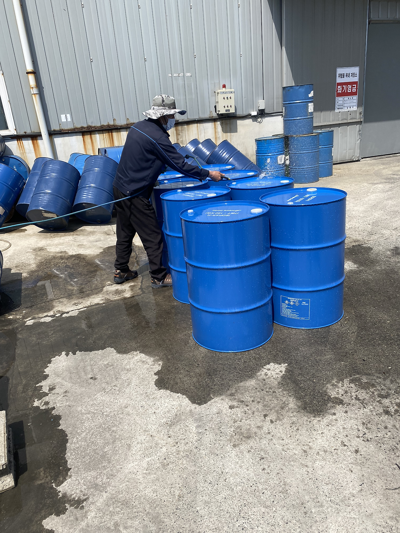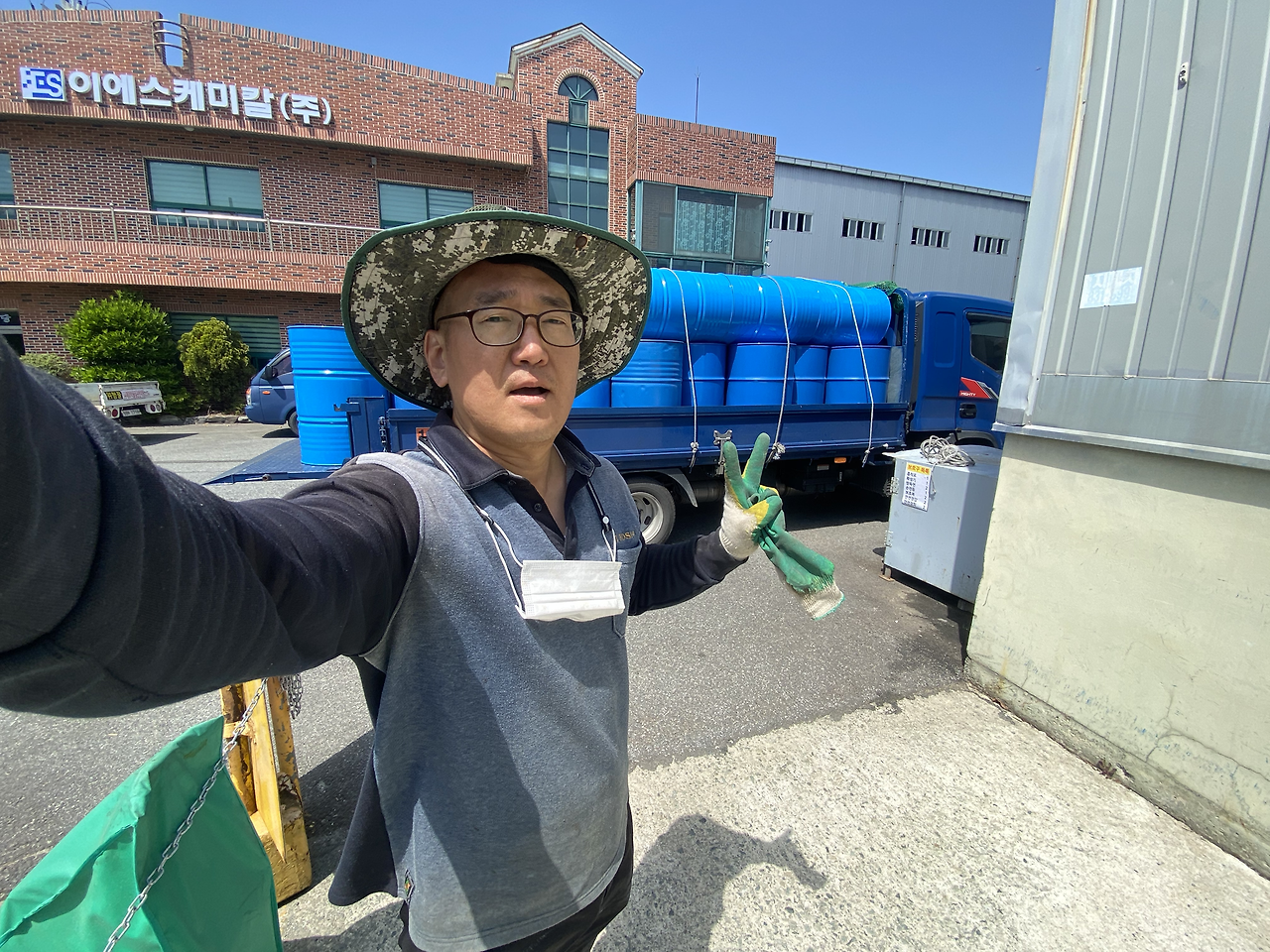 내가 요즘 일잘러로 승급했는데(나스스로), 회사에서도 나를 믿고 신뢰하기에 급발주건을 이렇게 나에게 묻고 발주를 넣는것 같아서 일잘러써의 어깨 뿜뿜 하는 오전이었다. 예상대로 모두 돌려면 서둘러야 해서 쉬는 시간이 없이 바로 바로 움직였다. 삼전에 들러서 DMF 한드럼을 싣고 아이소파 8드럼을 실으려고 하는데, 현장 직원분이 ”아이소파 바로 납품 하실겁니까? 지저분 한데, 씻어 드릴까요?“ 라고 하셔서 오늘 바로 납품할꺼라 ”네“ 하고 답했다. 먼지가 가득 쌓인 아이소파 8드럼을 가지고 오셨다. 호스로 물을 뿌리고 밀대로 물을 묻혀 먼지를 씻어내고 다시 물을 뿌리고, 최종적으로 에어건을 불어 물기를 날려 버렸다. 그런데, 무슨 급한 회사 용건으로 전화가 왔는지 전화받으며 일을 하시느라 한참이 지체되었다. 거기서 10분은 지체한것 같다. 드럼 을 싣고 삼전 근처에 있는 이에즈에 들렀다.